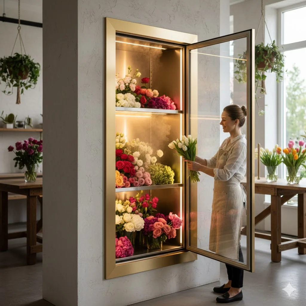 플라워 샵: 직원이 앞에서 꽃을 다듬고 바로 넣을 수 있는 앞문형 구조는 작업 효율을 2배 이상 높여줍니다.