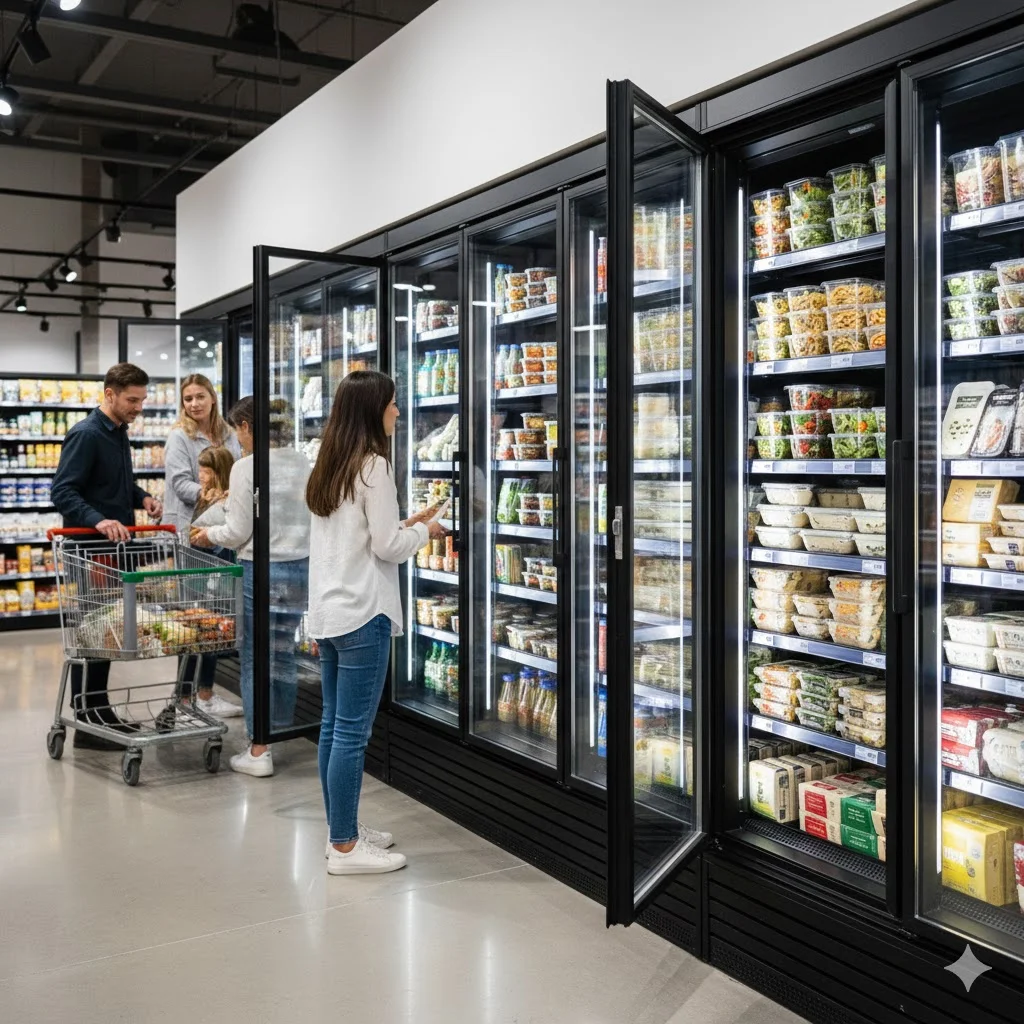 밀키트/반찬 가게: 고객이 직접 유통기한과 성분을 확인하고 고를 수 있는 앞문형 쇼케이스는 신뢰와 위생을 동시에 잡는 방법입니다.
