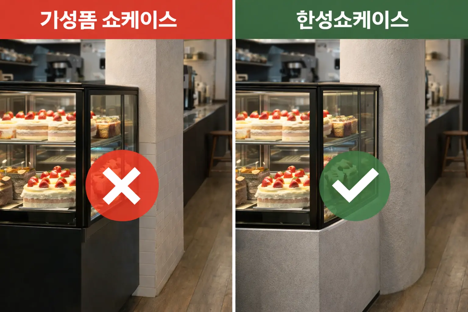 쇼케이스사이즈가 매장 규모와 맞지 않으면 고객이 느끼는 개방감이 확 줄어듭니다. 정작 팔아야 할 음식은 구석에 박혀서 안 보이는 현상이 생기죠.