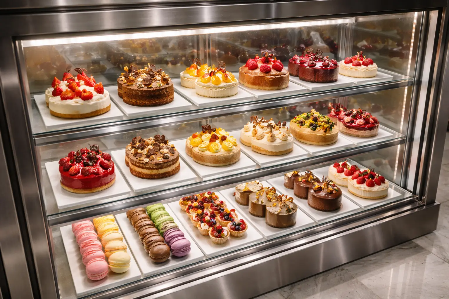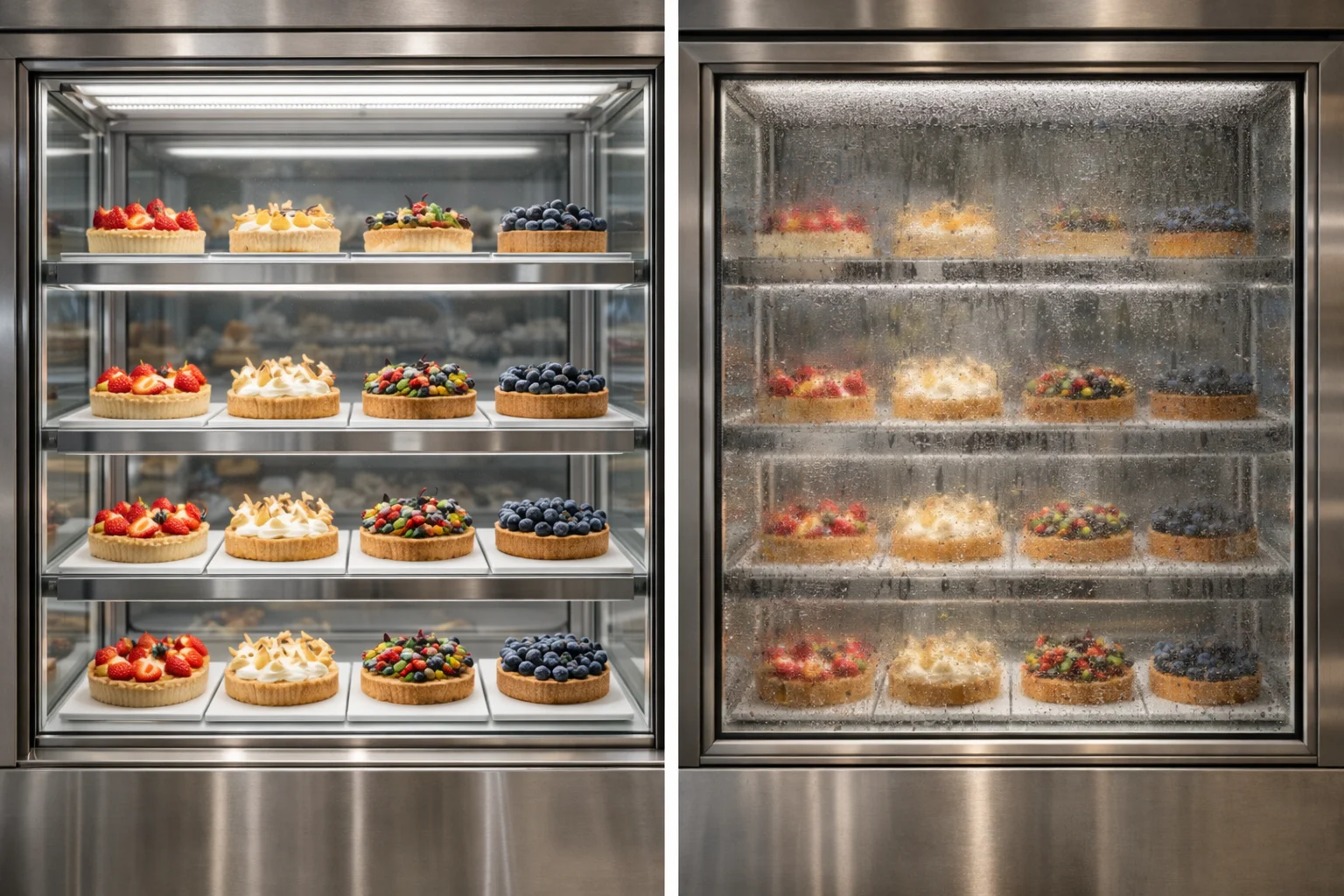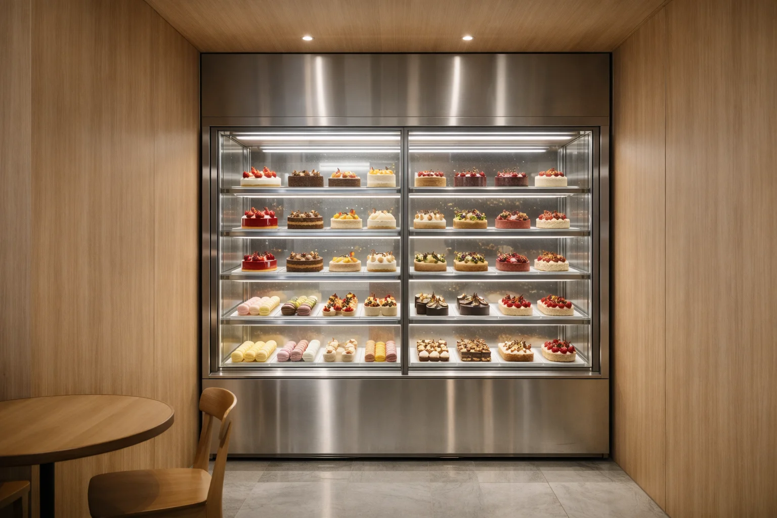 특히 대한민국처럼 여름철 습도가 높은 환경에서는 더욱 그렇습니다. 유리에 물방울이 맺히는 순간 공들여 만든 디저트의 비주얼은 끝입니다. 열선을 넣는 수준을 넘어, 유리의 구조, 마감 처리 기술력까지 확인해야 합니다. 하루 종일 닦을 필요 없는 투명함이 곧 매출입니다.