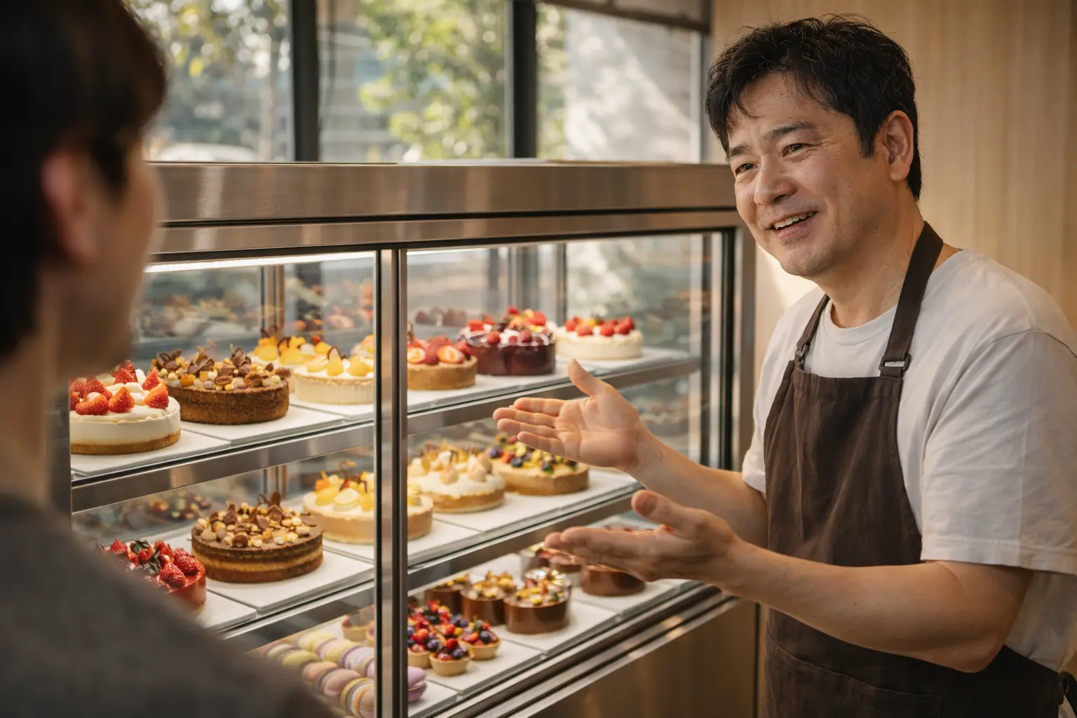 이건 심각한 운영 리스크입니다. 쇼케이스는 디저트의 최상의 컨디션을 유지하고 손님의 구매욕을 자극하는 중요한 마케팅 툴이기 때문입니다.