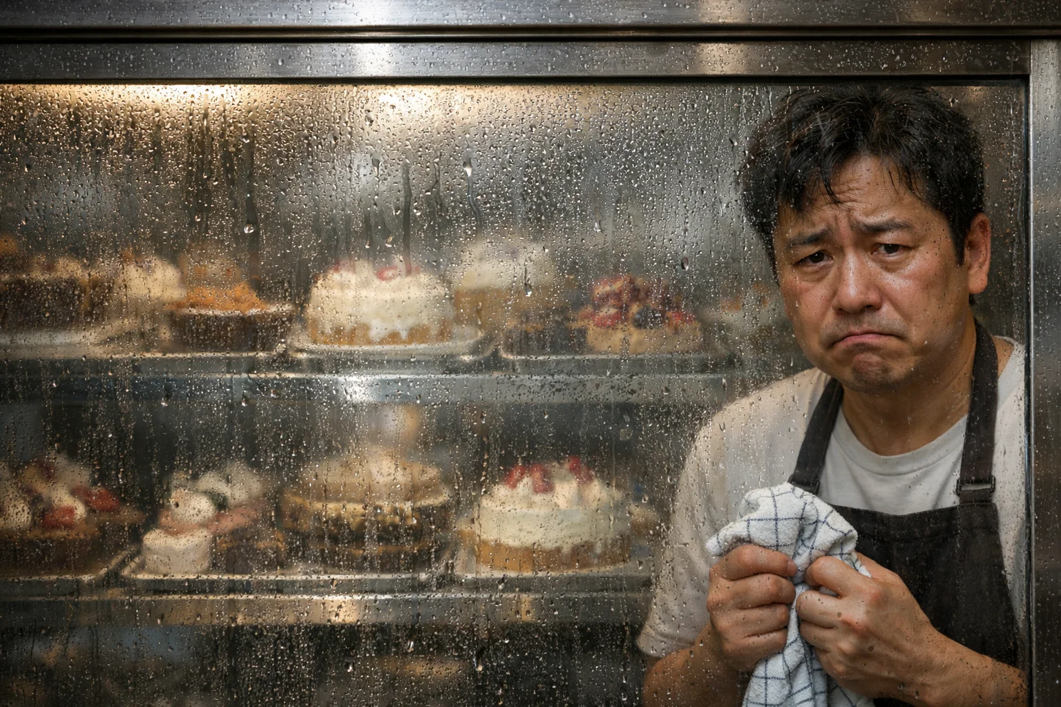 디저트는 축축해져서 상품성이 떨어지고, 손님들은 안 보인다고 컴플레인을 하죠. 결국 하루 종일 유리만 닦다가 시간을 다 보내고, 반년도 안 돼서 쇼케이스를 교체하느라 이중으로 돈을 날리셨습니다.