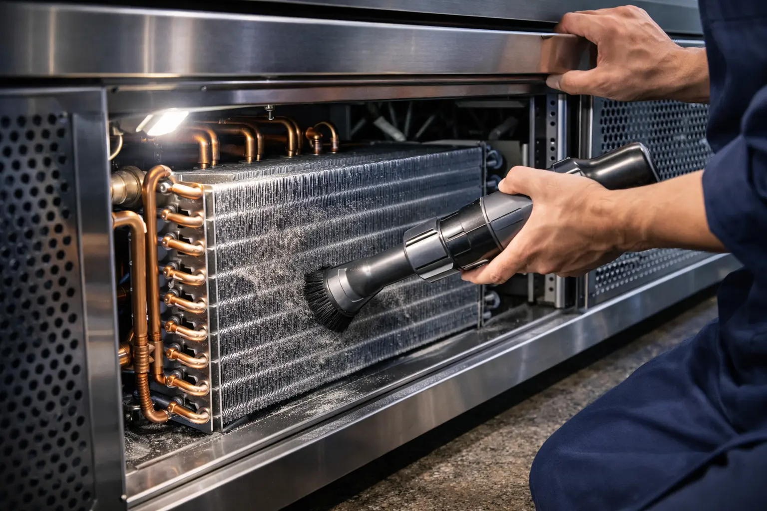특히 바닥 청소를 할 때 사용하는 물이 기계 하부로 스며들지 않게 주의해야 합니다. 또한 기계 뒷면의 응축기에 먼지가 쌓이면 냉각 효율이 급격히 떨어지므로 한 달에 한 번 먼지를 제거해주는 것만으로도 수명을 2년 이상 연장할 수 있습니다.