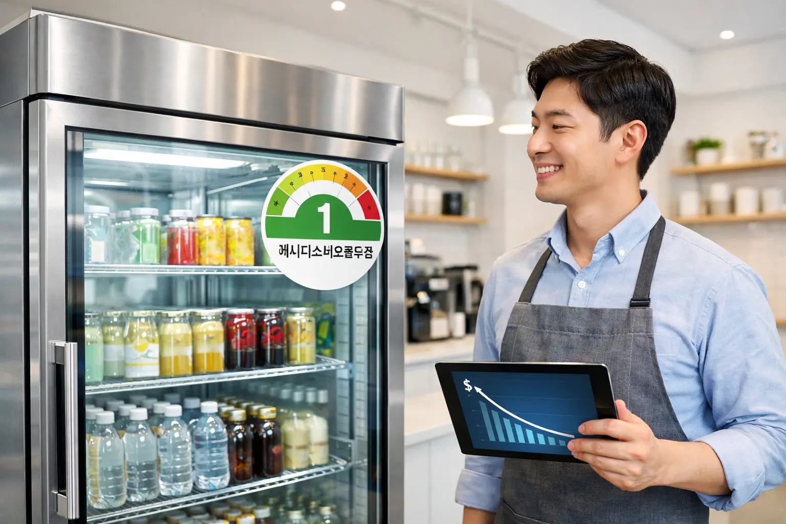 많은 사장님이 간과하는 사실 중 하나가 바로 에너지 소비효율 등급입니다. 24시간 내내 전기가 들어가는 업소용쇼케이스냉장고는 등급 하나 차이에 따라 연간 유지비가 수십만 원 이상 차이 납니다.