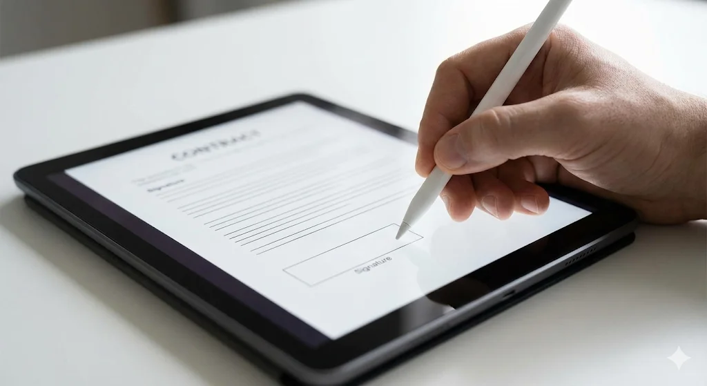 최근에는 종이 서류 대신 스마트폰이나 이메일을 활용한 전자 계약 방식이 활성화되고 있습니다.