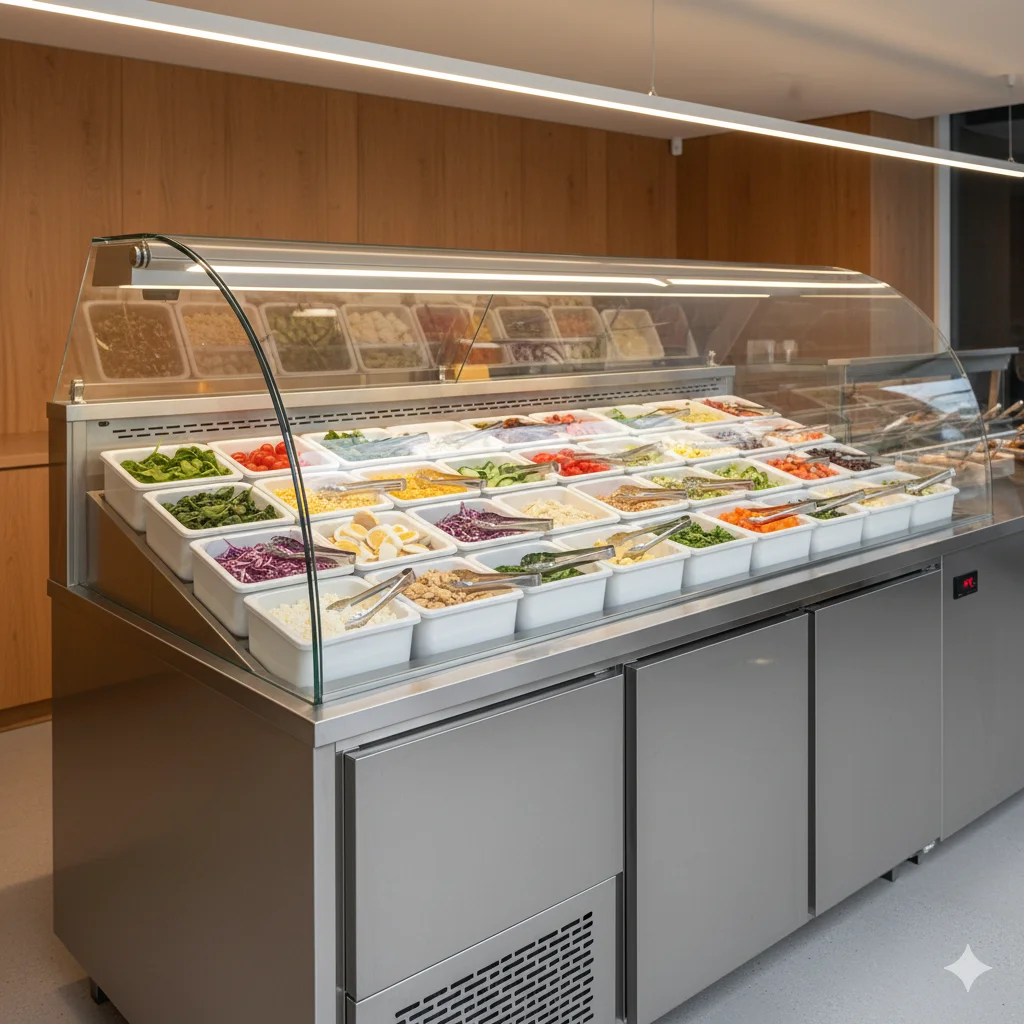 비 중 하나가 바로 샐러드 냉장고입니다. 신선함이 곧 생명인 샐러드 재료와 완성된 샐