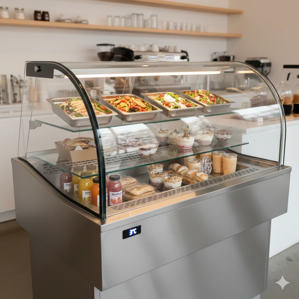 한성쇼케이스의 샐러드 전용 냉장고는 채소 보관에 최적화된 온도를 정밀하게 유지하