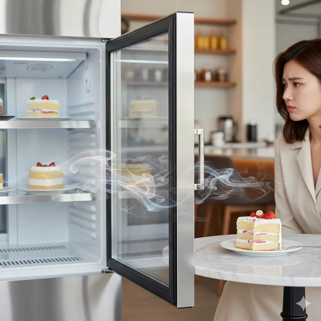 Q2. "냉장고 문을 열 때마다 묘한 냄새가 나요. 케이크에 냉장고 냄새가 배어서 손님이 한입 먹고 인상을 쓰시는데 어떡하죠?"