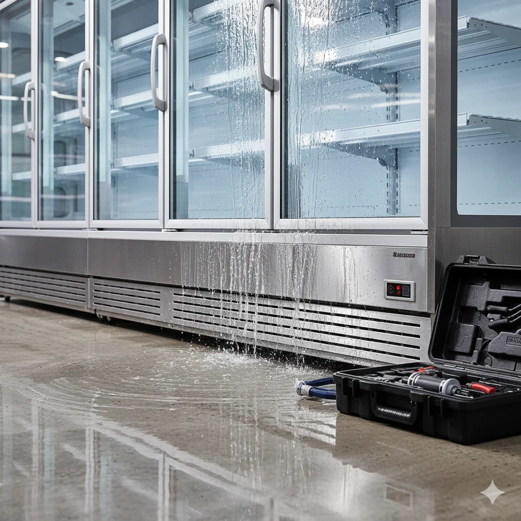 Q3. "유리 선반이 아니라 옆면 판넬에서 물이 줄줄 흘러 바닥에 고여요. 청소의 문제가 아니라 기계 자체에서 땀을 흘리는 것 같은데 해결 방법이 없나요?"