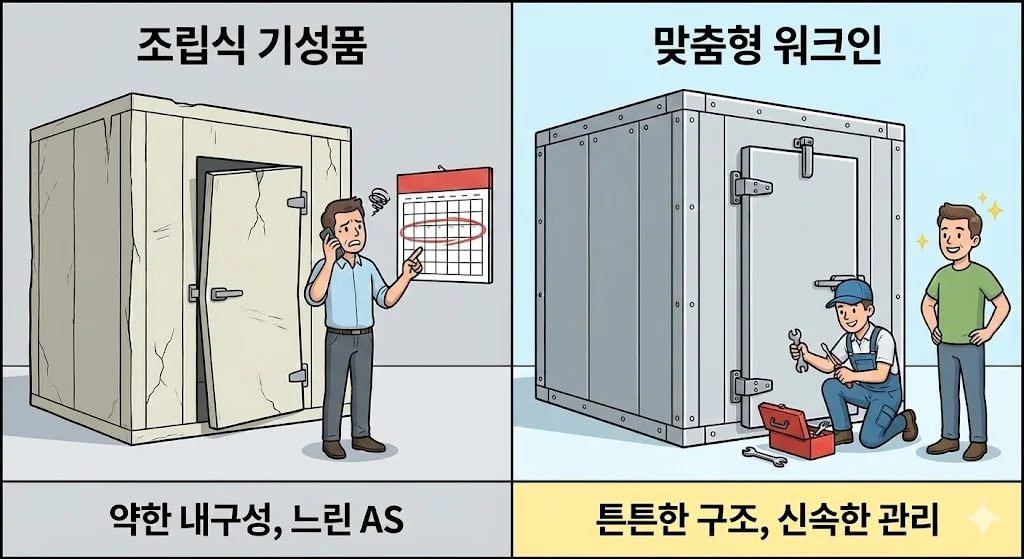 오늘은 조립식 기성품과 현장 맞춤형 워크인냉장고가 단열 성능과 사후 관리 측면에서 어떤 결정적인 차이가 있는지 낱낱이 분석해 드리도록 했답니다.