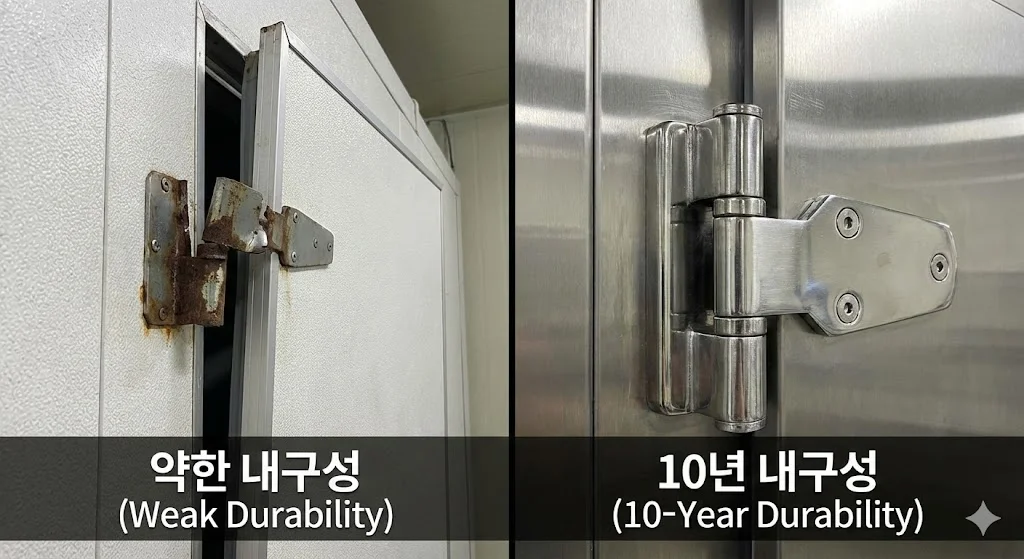 워크인냉장고에서 가장 고장이 잦은 부위가 어디인지 아시나요? 바로 매일 수십 번씩 여닫는 '도어'와 이를 지탱하는 '힌지(경첩)'랍니다.