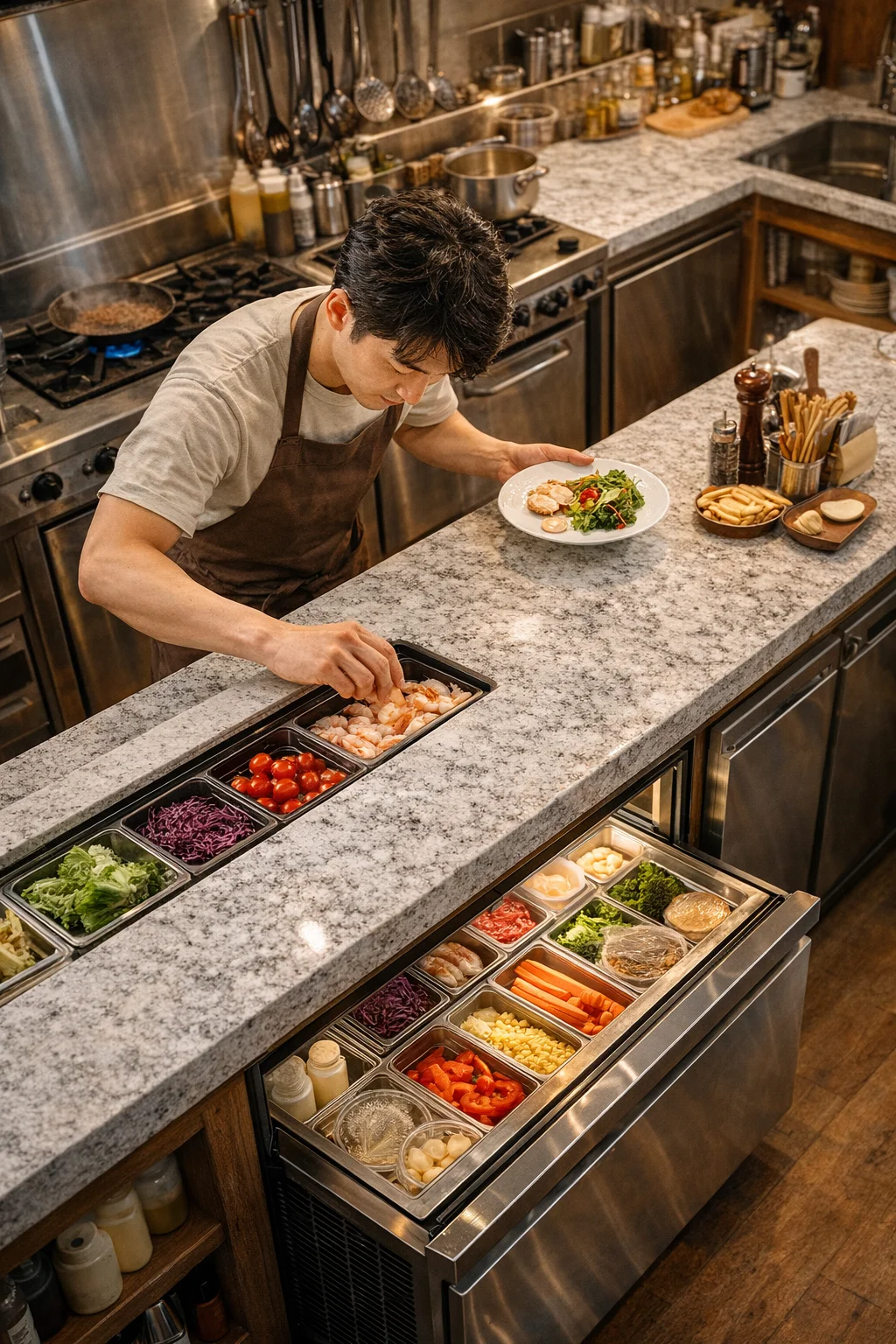 특히 최근 유행하는 협소 매장이나 1인 운영 식당에서는 동선 10cm가 일의 효율을 완전히 바꿔놓거든요. 주방 바닥에 식재료를 쌓아두는 일이 없도록, 수직 공간을 최대한 활용한 맞춤형 설비는 실질적인 매출 증대에도 기여해요.