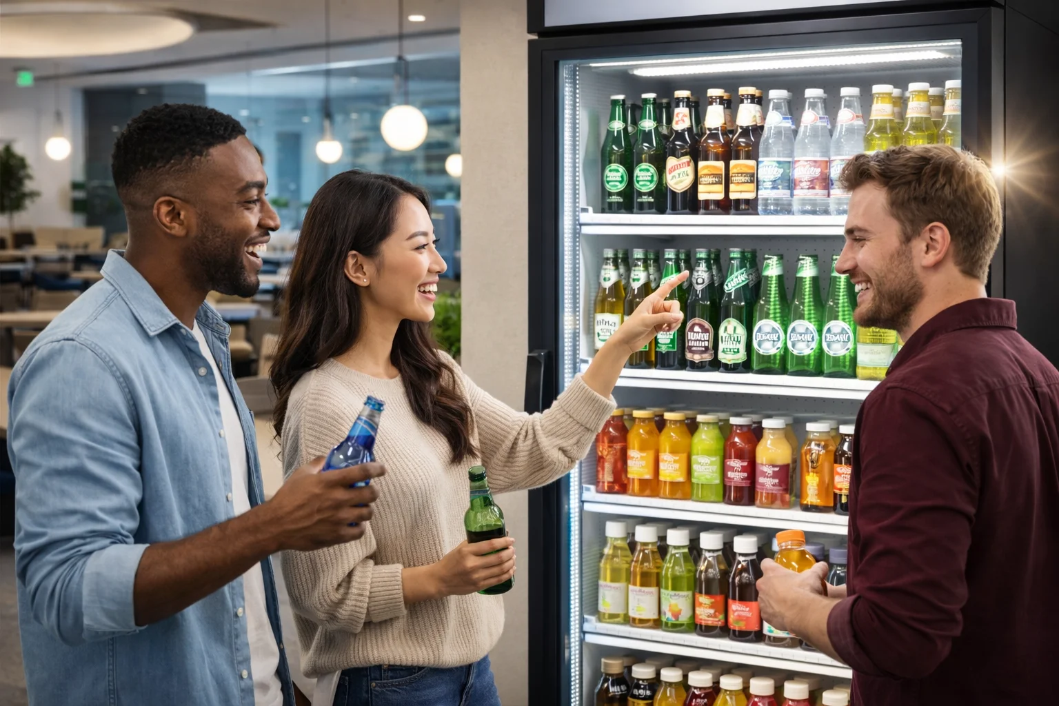 투명 도어를 통해 직원들이 문을 열지 않고도 마실 음료를 고를 수 있게 해주니 불필요한 전력 낭비도 줄여주고 사무실을 마치 카페처럼 세련되게 만들어주거든요.