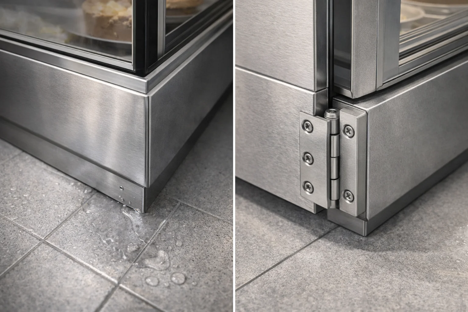 또한 청소하기 편한 구조인지도 꼭 따져보세요. 바닥 면에 물이 잘 빠지는지, 선반 탈거가 쉬운지는 위생 관리 효율에 엄청난 영향을 주거든요. 매일 한 시간씩 청소하는 것보다, 애초에 관리가 편하게 설계된 장비를 쓰는 게 훨씬 남는 장사예요.