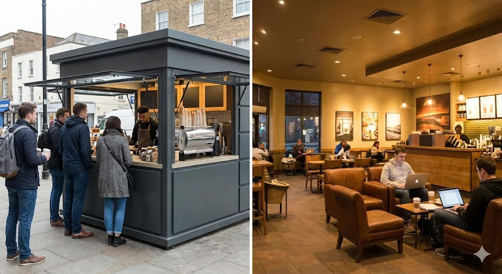 저가형 브랜드 (메가커피, 컴포즈커피 등): 보통 10평 내외의 소규모 매장으로 시작하며, 테이크아웃 비중이 높습니다. 가맹비와 교육비는 저렴한 편이지만, 높은 회전율을 위해 유동인구가 많은 A급 입지를 잡아야 하므로 임대료와 권리금 부담이 클 수 있습니다.