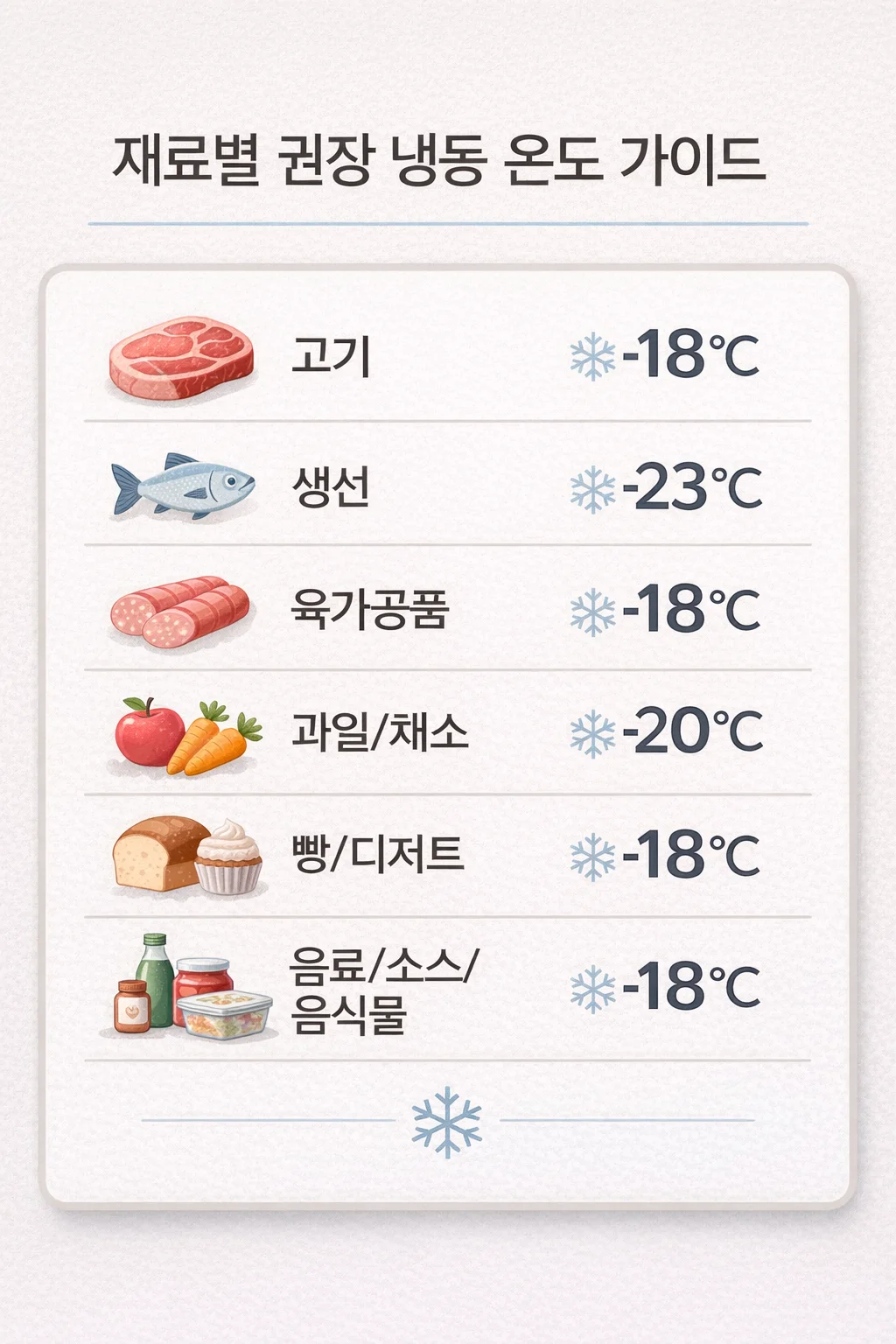 재료 카테고리 | 권장 보관 온도 | 핵심 관리 포인트 |