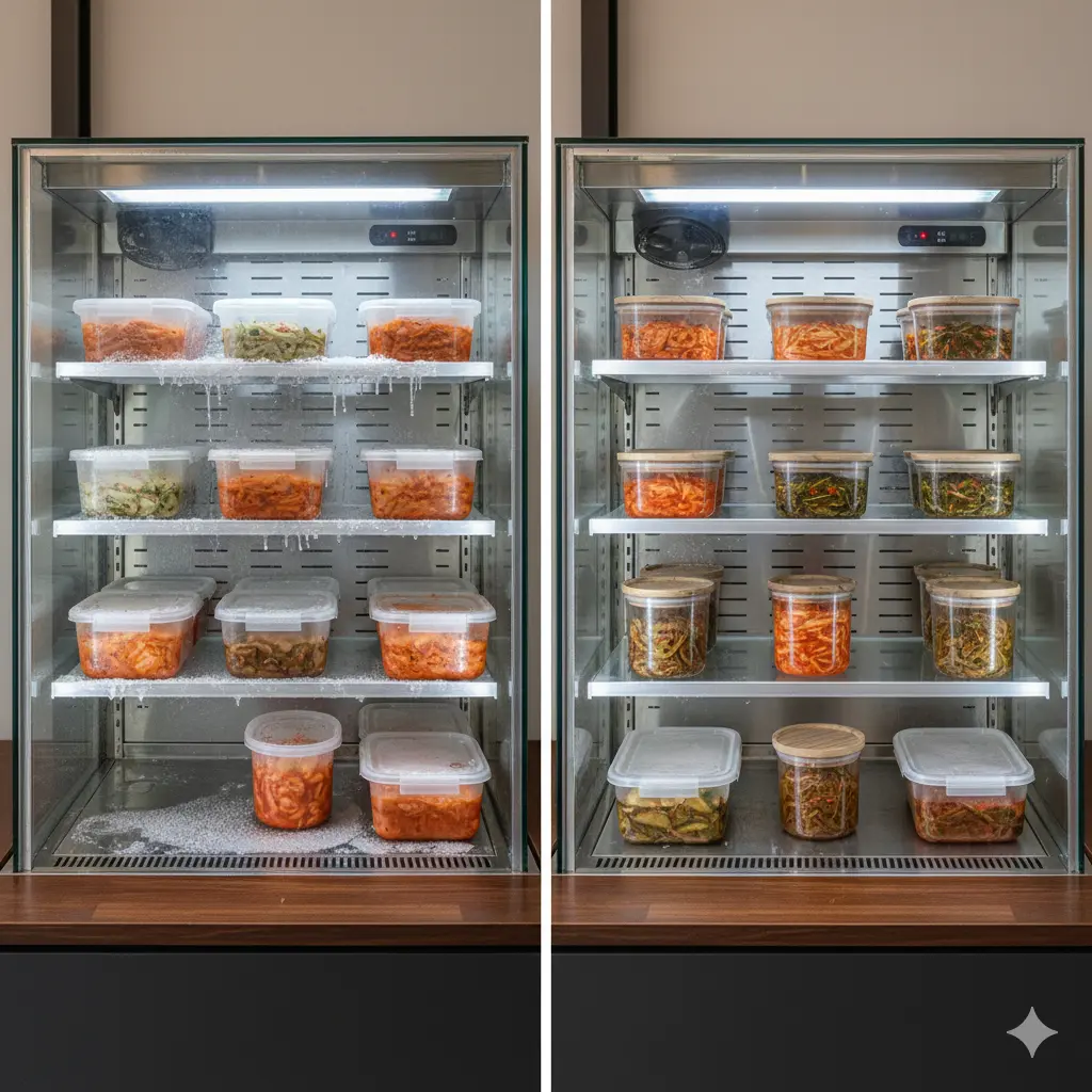 격만 보고 구매했다가, 나중에 몰려오는 성에와 온도 불균형 때문에 후회하시는 사장님