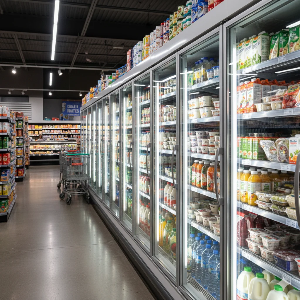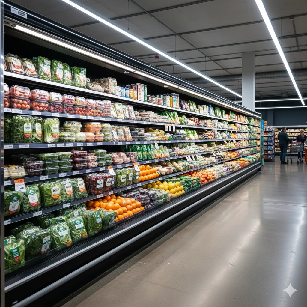 한성쇼케이스: 한성의 독보적인 에어커튼 기술은 외부 열기를 완벽히 차단하고 내부 온도를 일정하게 유지합니다. 채소의 아삭함과 고기의 선홍빛이 오래 유지되니, 손님들은 "이 마트 물건이 참 싱싱하다"는 인상을 받게 되고 이는 자연스럽게 단골 확보로 연결됩니다.