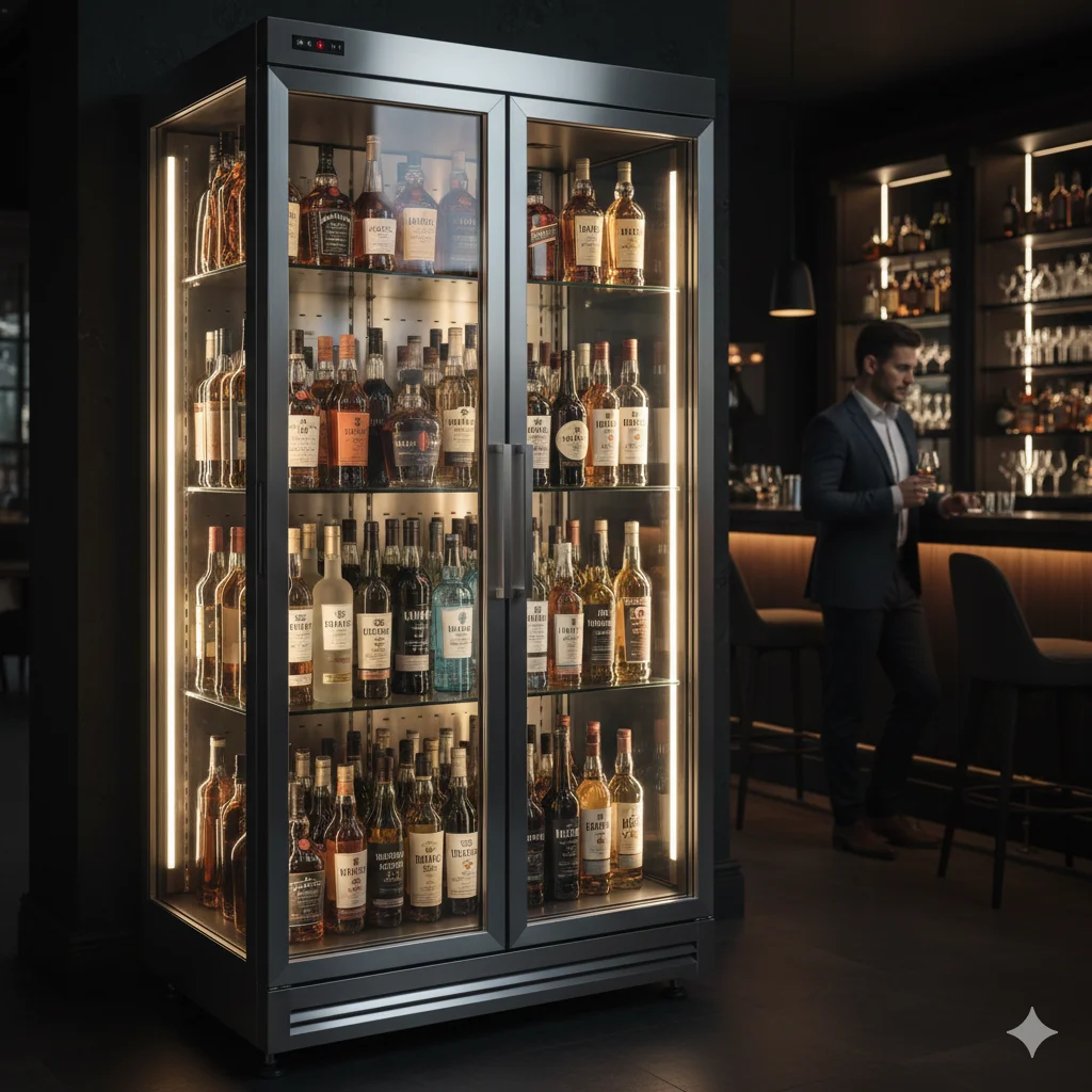 고연색성 LED 조명: 한성쇼케이스는 주류 라벨의 색상을 가장 선명하게 돋보이게 하는 특수 LED를 사용합니다. 어두운 조명 아래 있는 술보다, 영롱하게 빛나는 술을 볼 때 고객은 본능적으로 한 병 더 주문하게 됩니다.