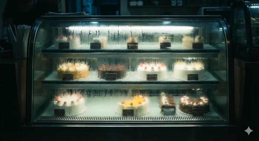 단순히 차갑게 보관하는 것을 넘어, 케이크의 수분이 마르지 않게 유지하고 조명을 통해 시각적인 매력을 극대화하는 것이 핵심입니다.