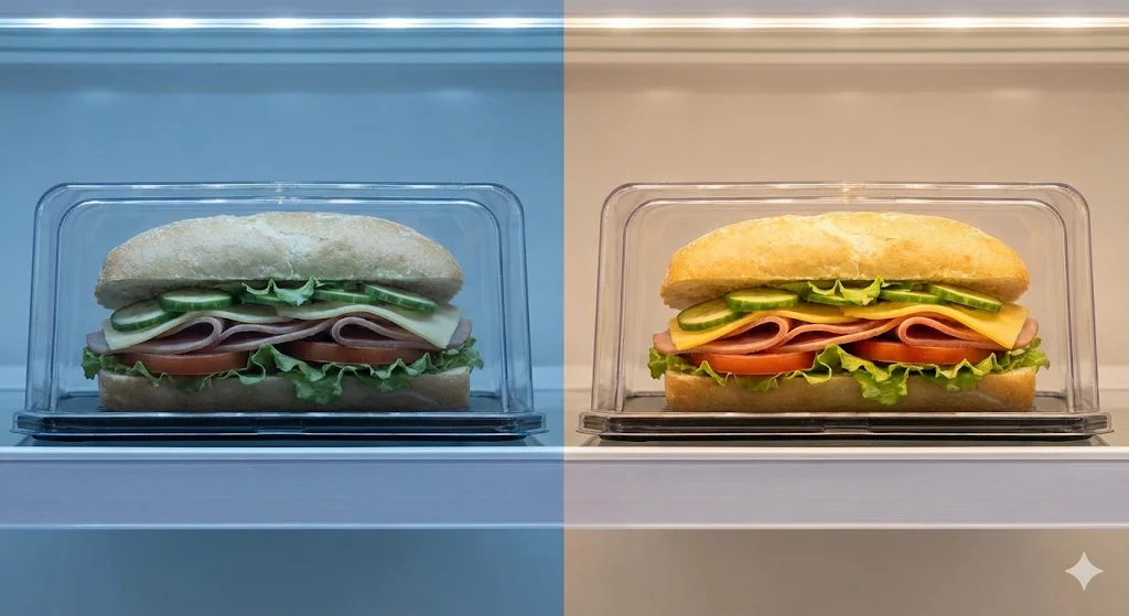 일반적인 저가형 장비는 푸른빛이 도는 저렴한 LED를 사용하여 음식을 차갑고 맛없어 보이게 만드는 실수를 범하곤 합니다. 하지만 매출이 높은 매장의 샌드위치 냉장고는 연색성(CRI) 지수가 높은 특수 조명을 사용합니다.