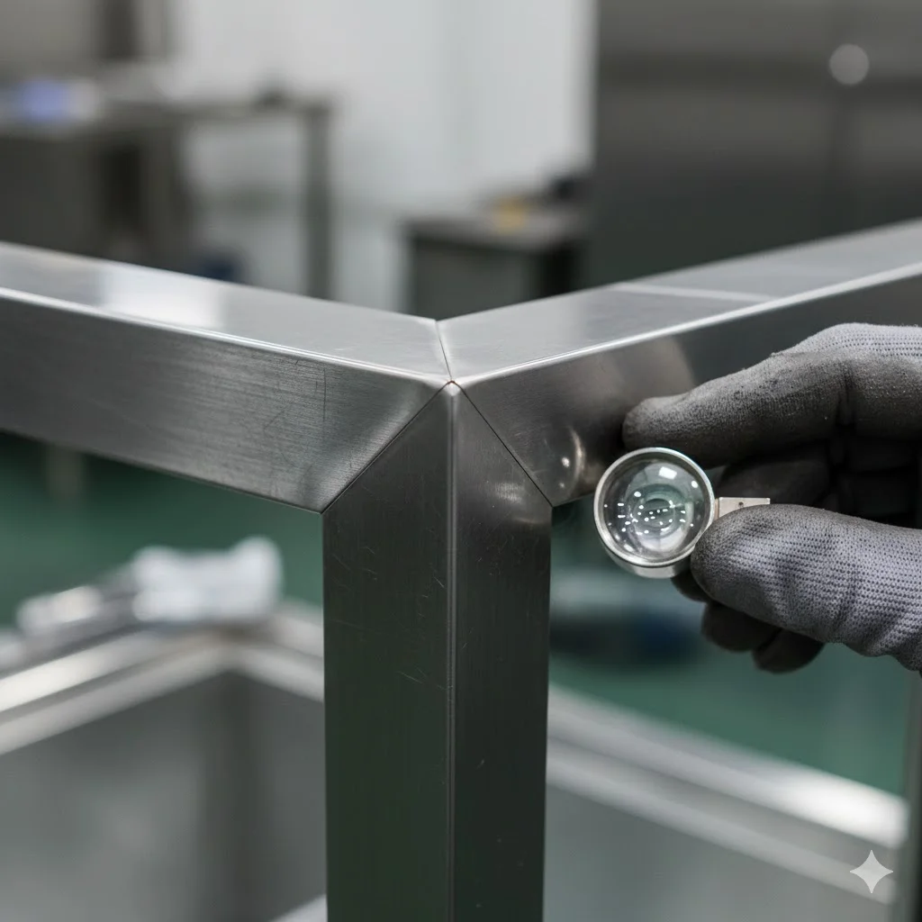 변치 않는 위생 소재(SUS304): 일반 중고 제품들이 시간이 지나면 내부 바닥이나 모서리에 녹이 스는 것과 달리, 한성쇼케이스는 최고급 스테인리스 SUS304를 전면 채택합니다.