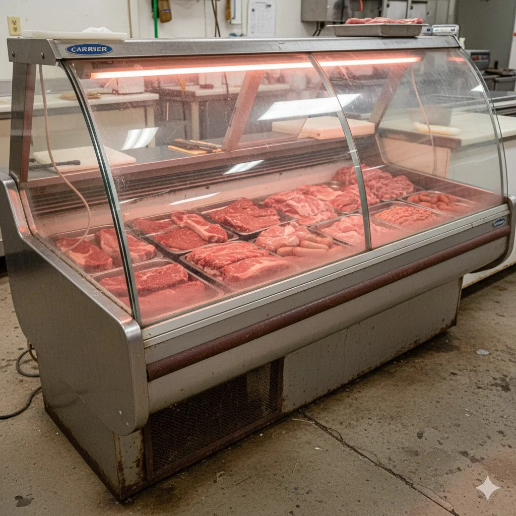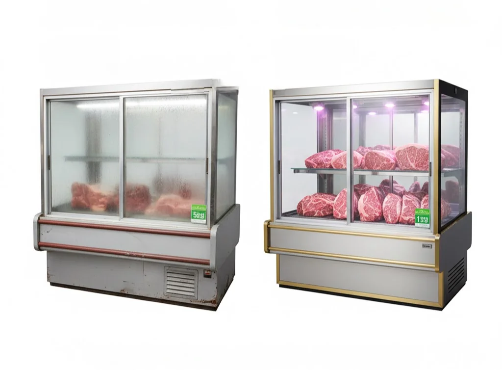 육색을 얼마나 생생하게 유지하느냐가 매출의 80%를 결정하는 정육 비즈니스에서, 쇼케이스는 단순한 냉장고가 아닌 ‘전시용 프레임’입니다.