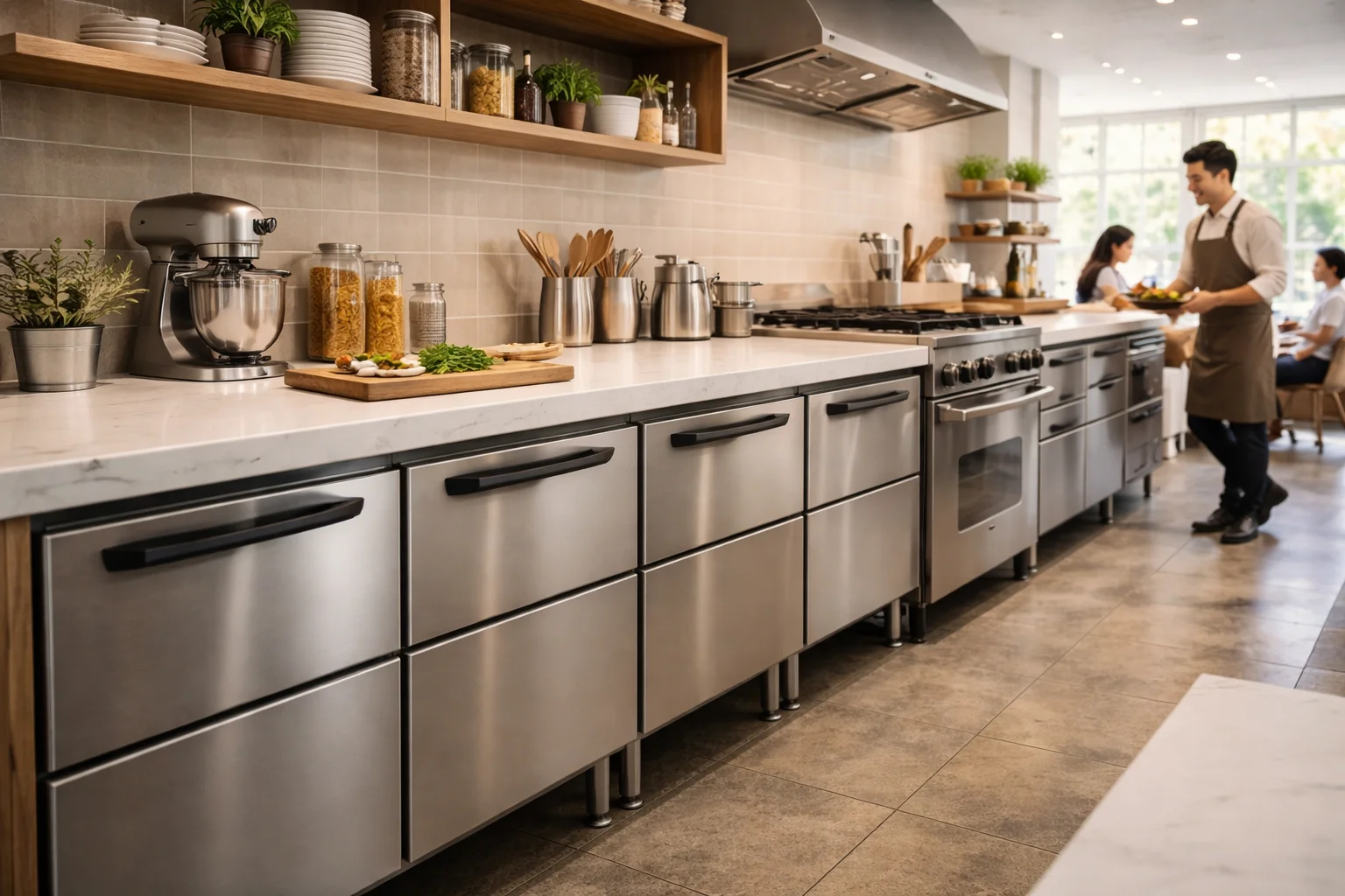 이런 효율성 덕분에 요즘은 주방 설계 단계부터 아예 조리대 하부에 이 장비를 배치하는 경우가 늘고 있어요. 별도의 공간을 차지하지 않으면서 조리와 수납을 한곳에서 해결할 수 있으니까요. 특히 오픈 키친 형태의 매장이라면 깔끔한 외관까지 챙길 수 있어서 인테리어 요소로도 손색이 없답니다.