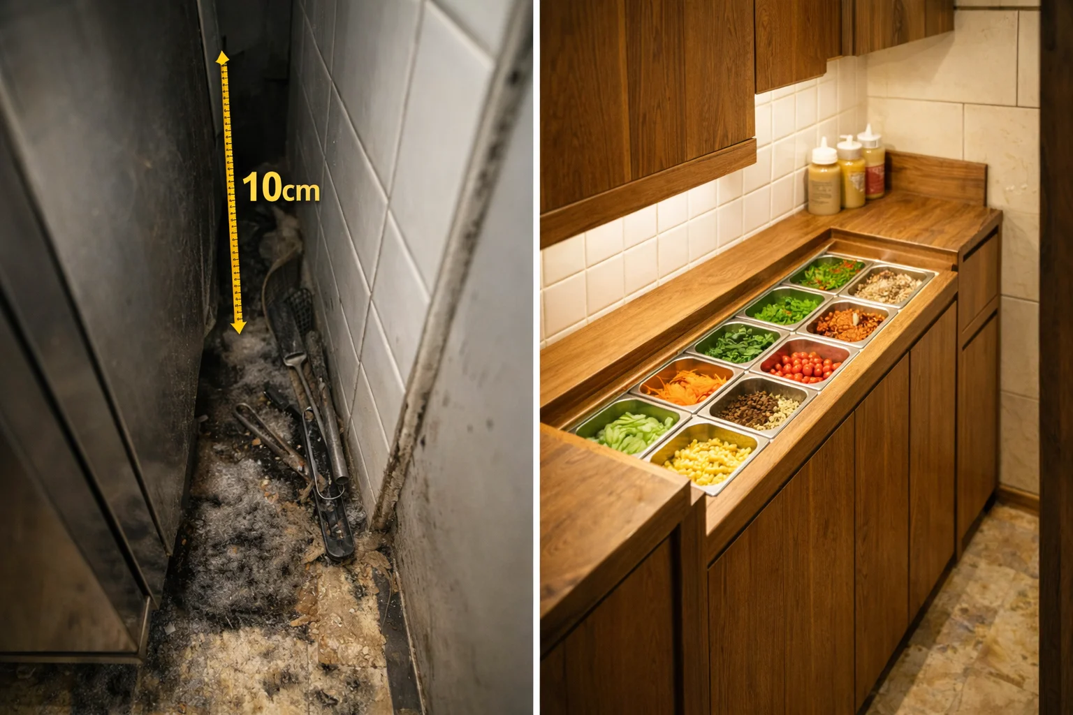 작은 가게일수록 버려지는 공간, 즉 데드 스페이스를 얼마나 줄이느냐가 관건이에요. 기성품 토핑냉장고900 설치 시 옆면이나 뒷면에 남는 5~10cm의 틈새는 먼지가 쌓이는 온상이자 바퀴벌레의 서식지가 되기 십상이죠. 이런 문제를 해결하려면 애초에 주방 벽면의 굴곡을 그대로 반영한 커스텀 설계가 답이 될 수 있어요.