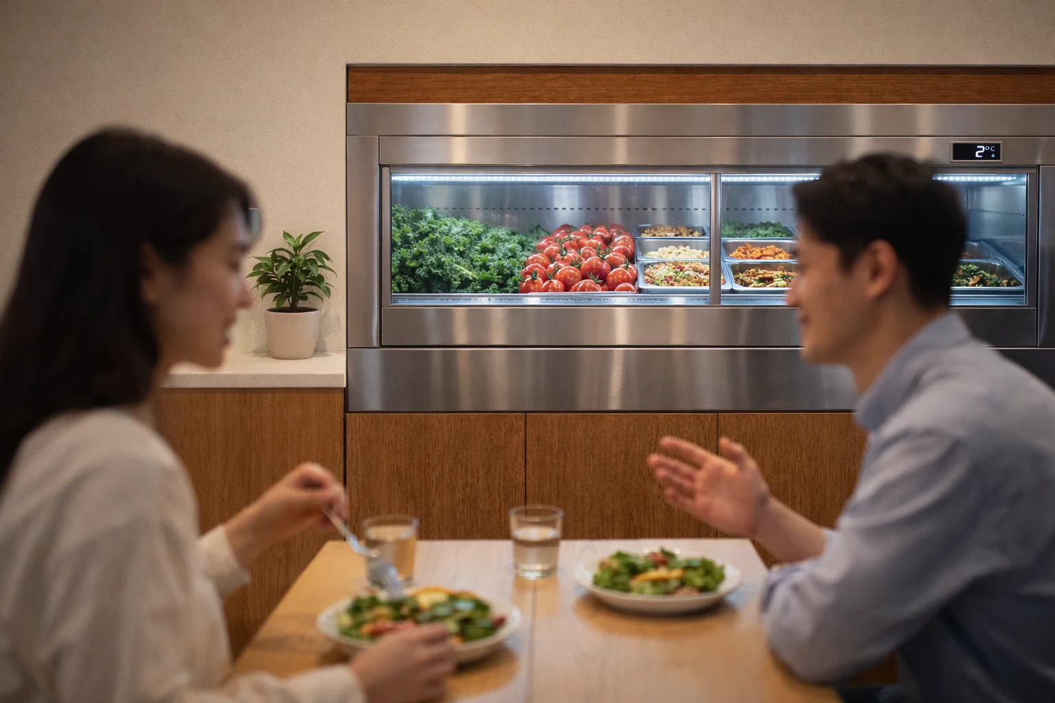 이런 기술력이 뒷받침되어야 신선한 채소의 아삭한 식감을 손님 접시까지 그대로 전달할 수 있어요. 상세한 기기 사양과 설계 원리는 한성쇼케이스 홈페이지에서 확인해 보실 수 있습니다.