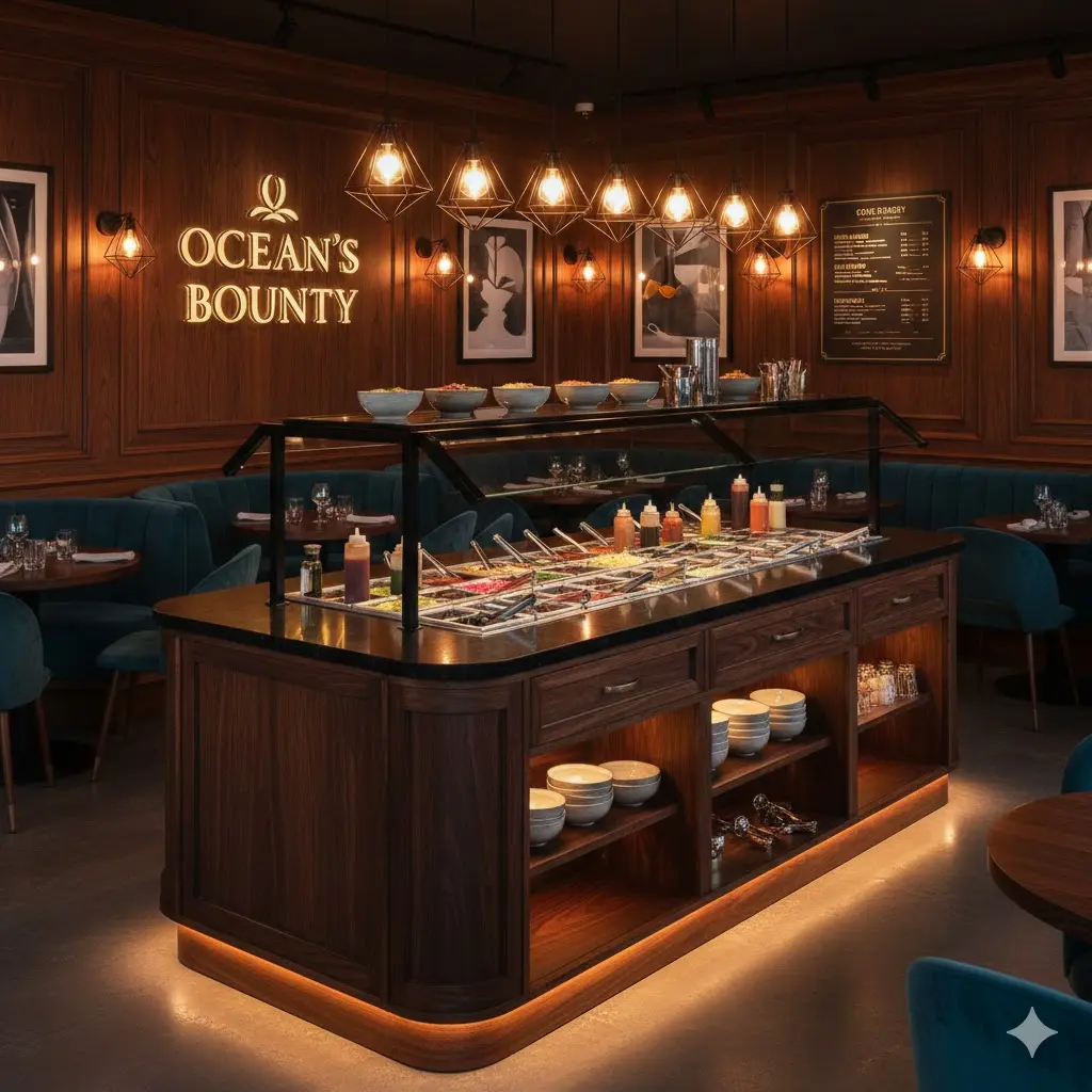 한성은 토핑테이블을 단순한 조리대가 아닌, 고객의 시선을 사로잡는 '프레쉬 아일랜드(Fresh Island)'로 격상시켰습니다.