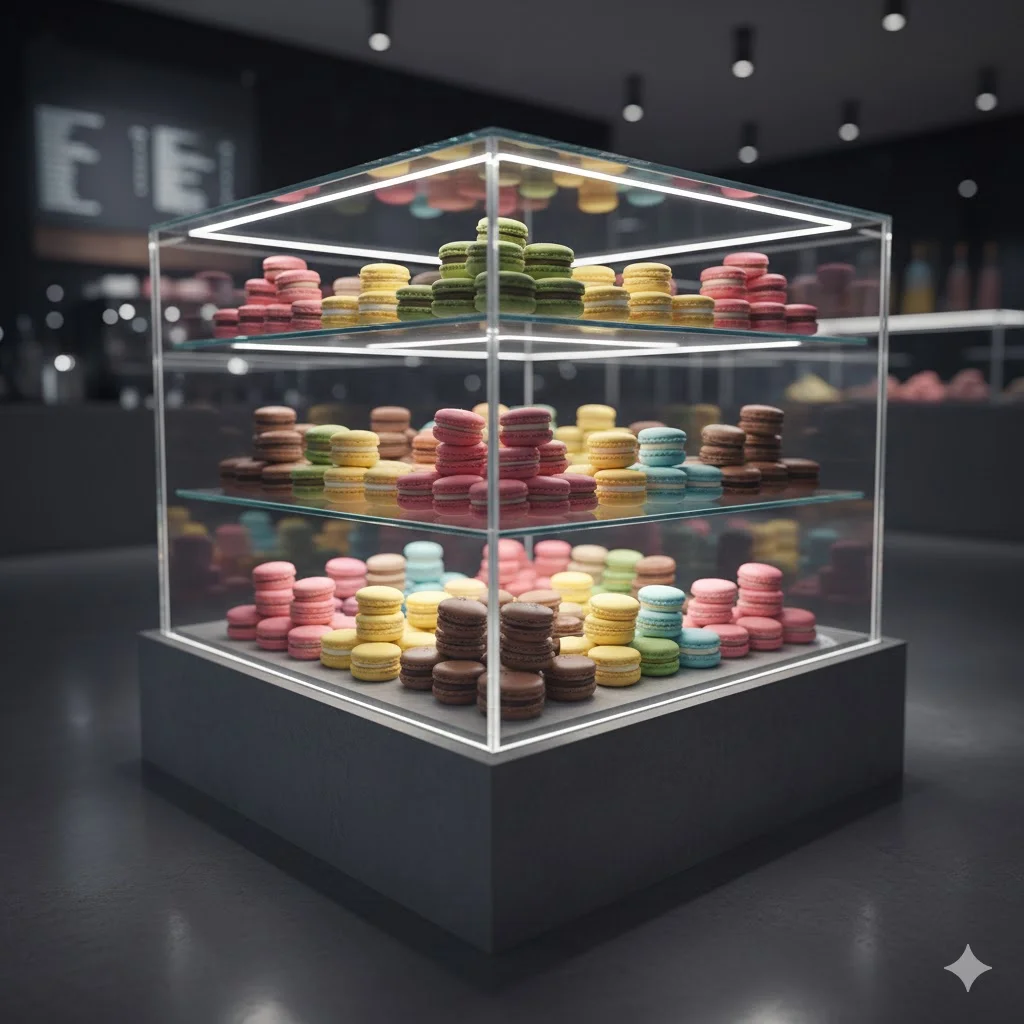 고객은 마치 디저트가 공중에 떠 있는 듯한 신비로운 개방감을 느끼게 되며, 이는 곧 프리미엄 브랜드 이미지로 직결됩니다.