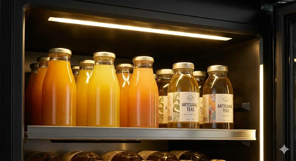 웜 화이트(Warm White): 고급스러운 수제 주스나 와인, 커피 음료에 적합합니다. '아늑함'과 '프리미엄' 이미지를 심어주어 고객이 제품의 가격보다 '가치'에 집중하게 만듭니다.