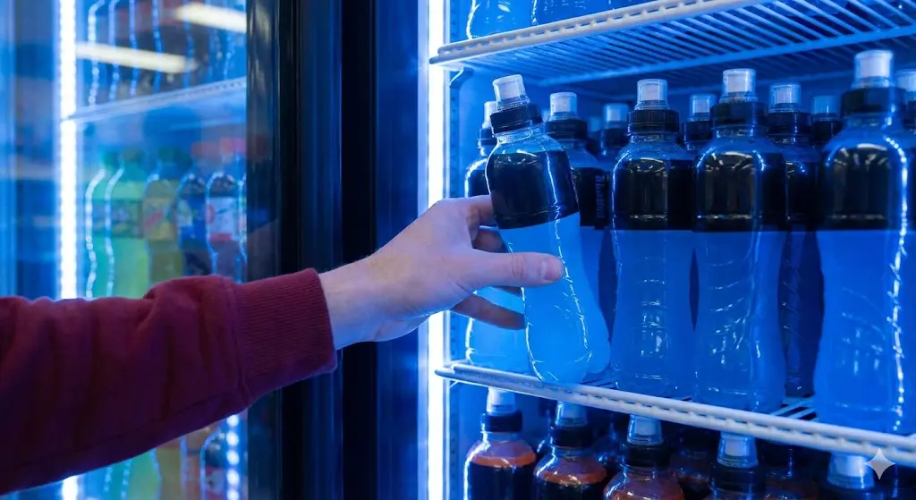 블루 및 특수 컬러: 스포츠음료나 기능성 음료 섹션에 배치하면 '과학적', '강력한 시원함'의 이미지를 전달하여 특정 타겟층의 시선을 단번에 사로잡습니다.