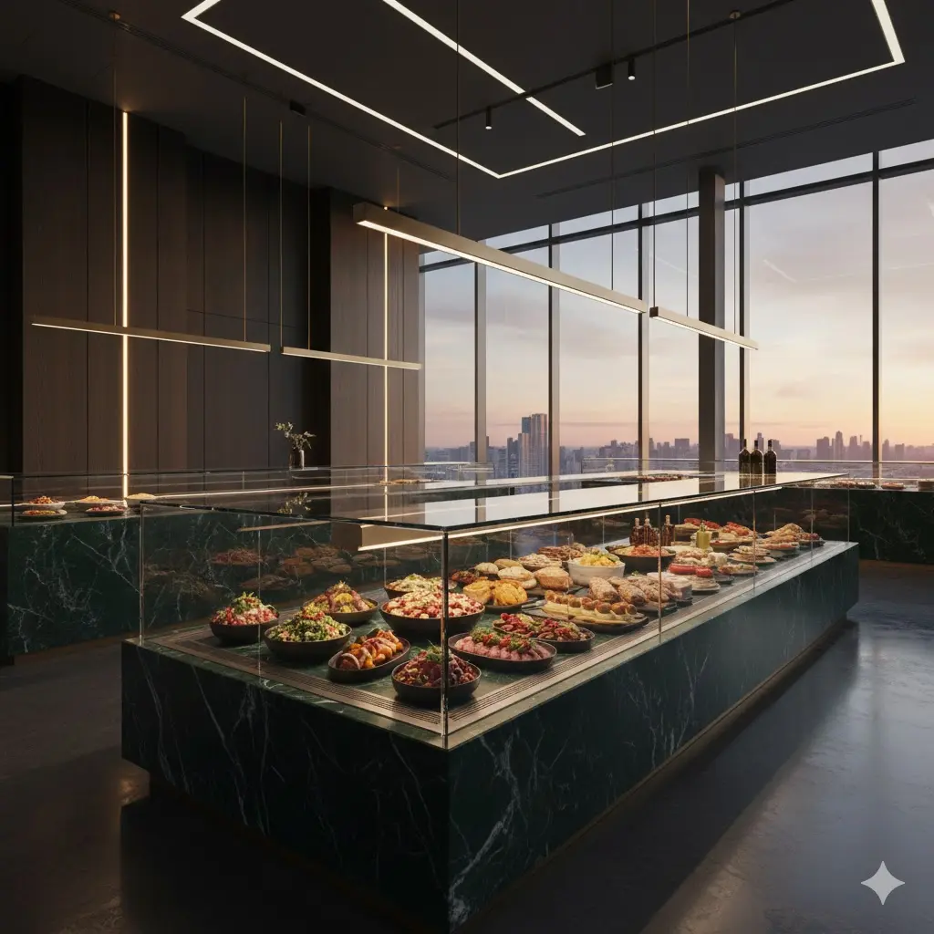 특히 프리미엄 델리, 수제 요리 전문점, 파인 다이닝의 투고(To-go) 섹션 등에서 음식쇼케이스는 단순한 보관 장비가 아닌, 고객의 욕망을 자극하는 '큐레이션 무대' 역할을 수행합니다.