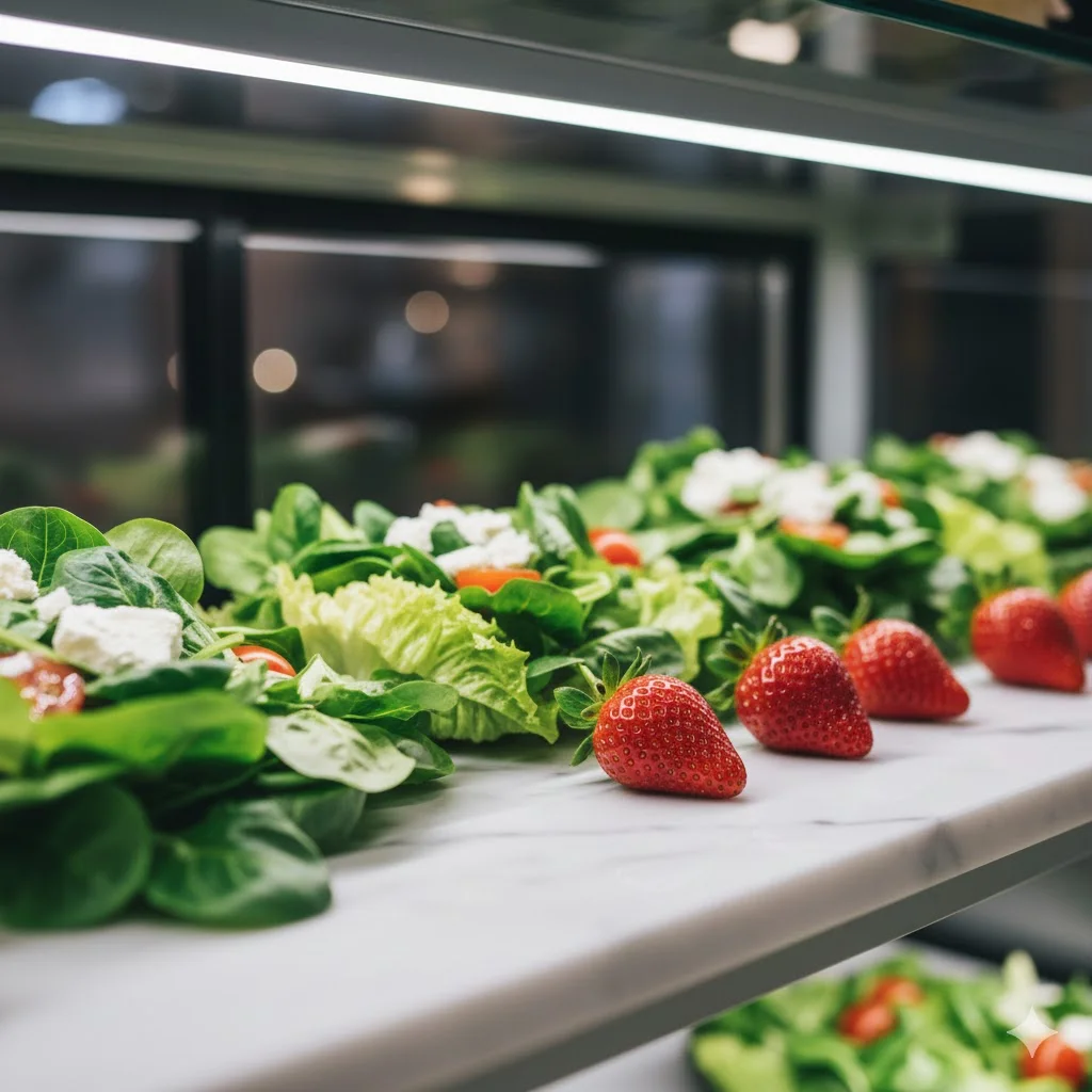 우위: 타 업체가 시도하기 어려운 '다이아몬드 커팅 백유리'와 'CRI 95+ 고연색성 조명'의 결합은 식재료 본연의 색감을 200% 이상 살려냅니다.