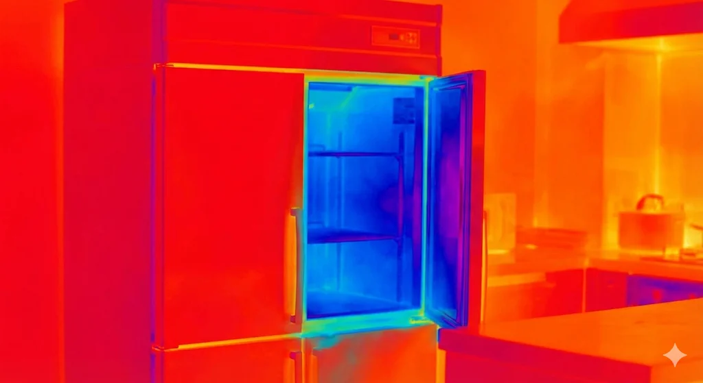 영업용 냉장고 내부의 온도가 1도 상승했을 때, 이를 다시 원래 상태로 복구하기 위해 컴프레셔는 평소보다 몇 배의 에너지를 소모하게 됩니다.