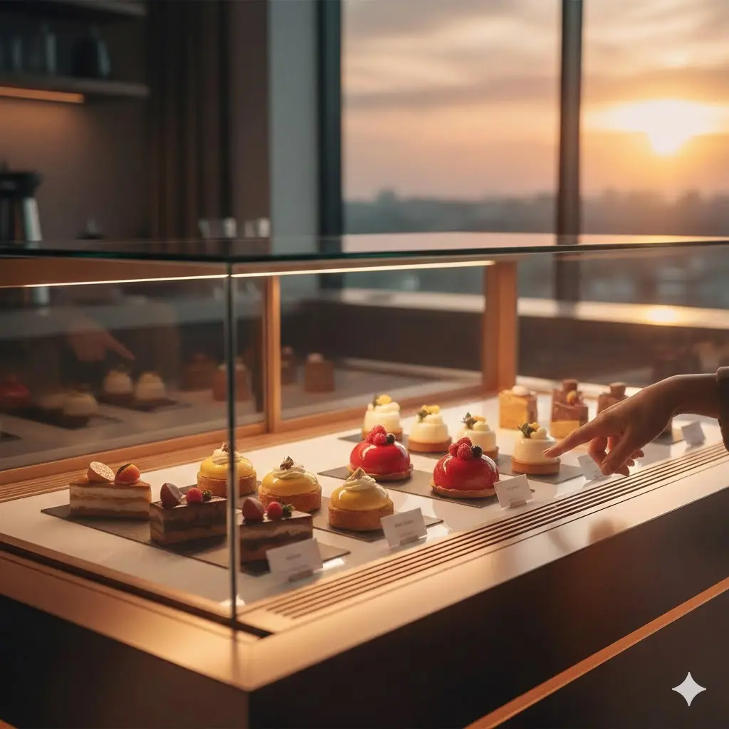 고객이 쇼케이스 앞에 섰을 때, 디저트와 본인 사이에 아무런 장애물도 없다고 느끼게 만드는 것.