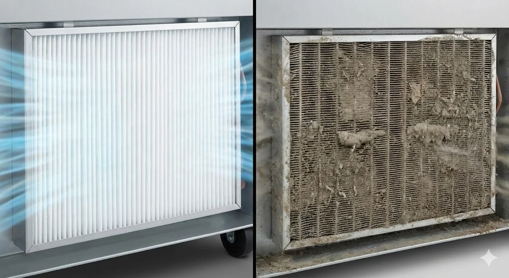 기계실 하단의 응축기 필터에 먼지가 쌓이면 열 교환이 원활하지 않아 전기료가 최대 30%까지 급증합니다. 또한, 뜨거워진 컴프레서는 기기 고장의 80% 이상을 차지하는 원인이 됩니다.