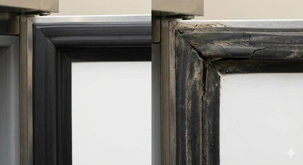 또한, 도어의 고무 패킹(가스켓)이 찢어지거나 음식물이 묻어 밀폐가 안 되면 내부 온도가 올라가고 식재료가 상하게 됩니다.
