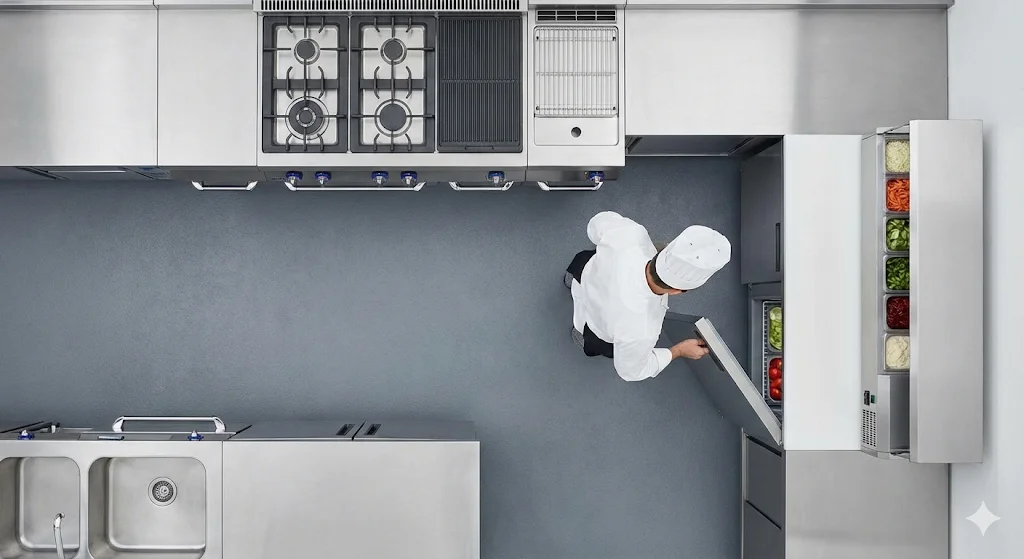 조리사의 동선을 최소화하고 식재료의 신선도를 실시간으로 유지하며, 바쁜 피크 타임의 회전율을 결정짓는 핵심 기기이기 때문입니다.