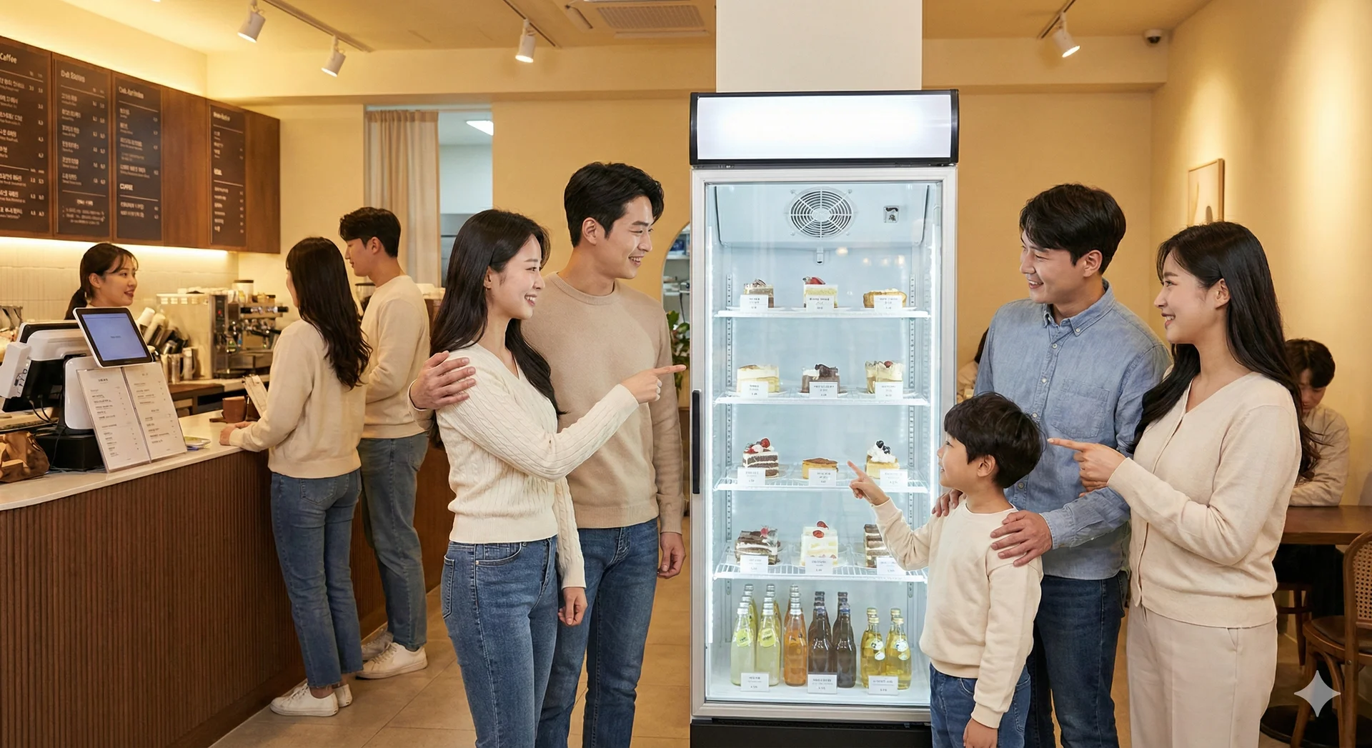 매장에 들어섰을 때 탁 트인 느낌을 주느냐, 아니면 꽉 막힌 느낌을 주느냐는 매출과 직결되는 아주 중요한 요소예요. 흔히 쓰이는 뚜껑형 제품은 위쪽 공간을 통째로 버리게 되지만, 세로형 장비는 천장 높이를 최대한 활용하기 때문에 같은 면적 대비 수납량이 압도적으로 많아요.