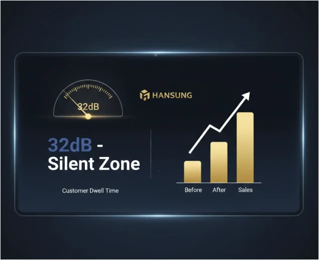 한성의 ‘사일런트-아우라(Silent-Aura)™’ 시스템은 매장의 배경 소음(Background Noise)을 최저 수준으로 유지하여, 고객이 공간에 머무는 동안 최상의 심리적 안정감을 느끼게 합니다.