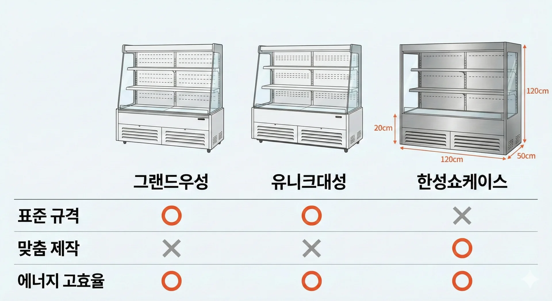 하지만 이 두 브랜드는 대량 생산되는 기성 제품 위주라는 특징이 있어요. 주방 구조가 특이하거나 공간이 좁아서 딱 맞는 규격이 필요한 경우에는 한계가 명확하죠. 이때 고려해 볼 수 있는 곳이 바로 한성쇼케이스예요.