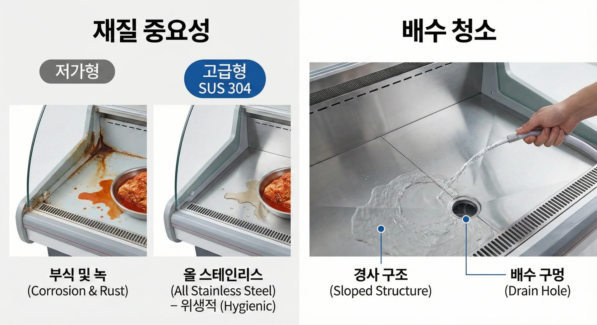 ๋ฐ๋์ ๋ฐ์ฐฌ ๊ตญ๋ฌผ์ด ๋ฟ๋ ๋ชจ๋ ๋ถ์(์ ๋ฐ, ๋ฐ๋ฅ, ๋ฒฝ๋ฉด)๊ฐ ๋ น์ ๊ฐํ ๊ณ ๊ธ ์คํ ์ธ๋ฆฌ์ค(SUS 304) ์ฌ์ง์ธ์ง ์คํ์ ํ์ธํ์ธ์.