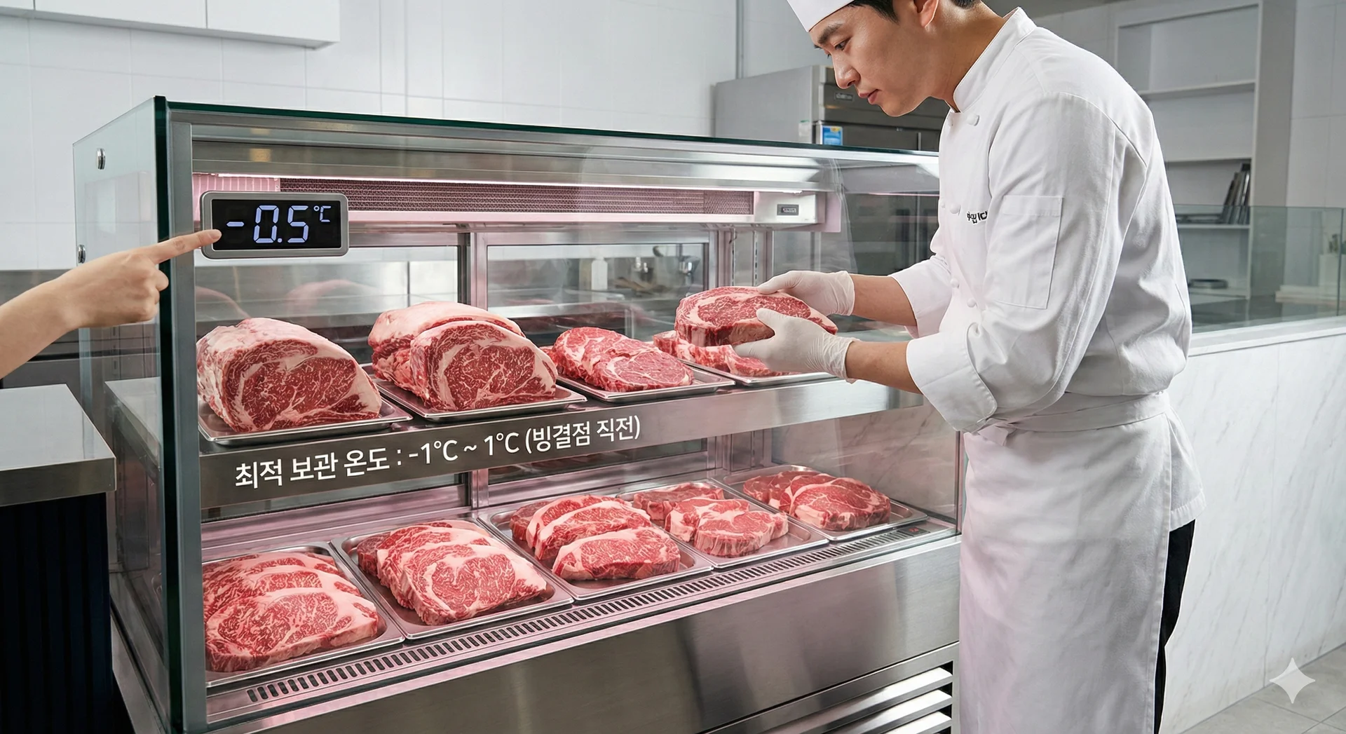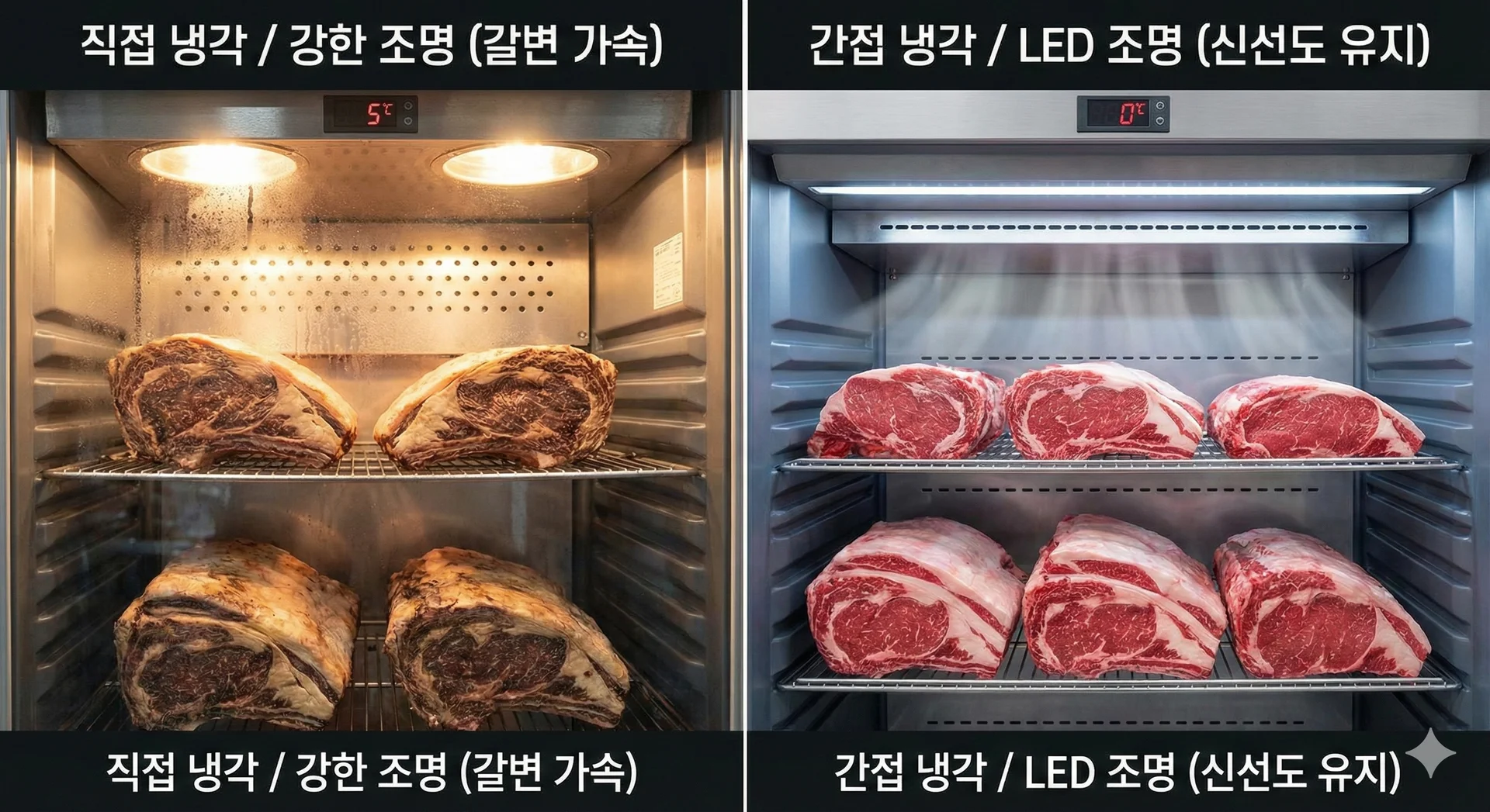 λλΌμ΄ μμ΄μ§(Dry Aging)μ λμ± μ κ΅ν©λλ€. μ¨λλΏλ§ μλλΌ μ΅λ(80~85%)μ 곡기 νλ¦κΉμ§ μ‘°μ ν΄μΌ ν©λλ€.