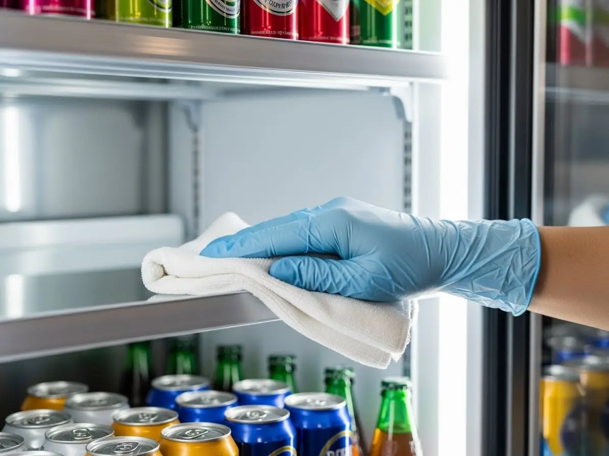 특히 음료수가 흘러내리거나 먼지가 쌓이기 쉬운 바닥과 선반은 더욱 신경 써야 해요. 식품 위생과 직결되는 부분이므로 게을리하지 마세요!