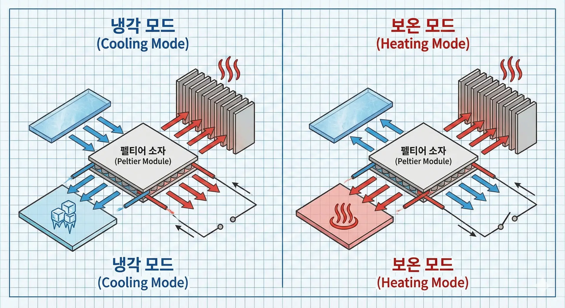 ์ค์์น ํ๋๋ก ์ ๋ฅ์ ๋ฐฉํฅ๋ง ๋ฐ๊ฟ์ฃผ๋ฉด ๋์ฅ๊ณ ๊ฐ ๋์๋ค๊ฐ ์จ์ฅ๊ณ ๊ฐ ๋๋ ๋ง๋ฒ ๊ฐ์ ์ผ์ด ๊ฐ๋ฅํด์ง๋ ๊ฒ์ด์ฃ .