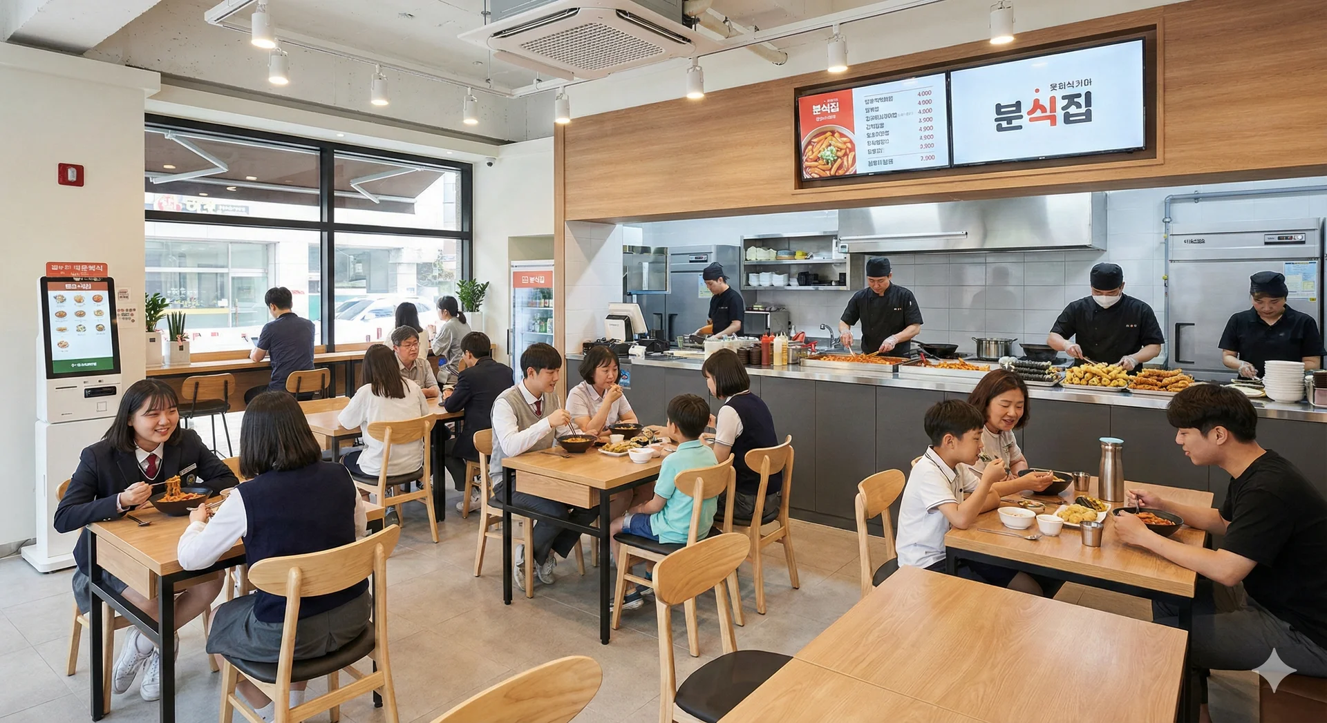 ๋ก๋ณถ์ด, ๊น๋ฐฅ, ์๋, ํ๊น์ผ๋ก ๋ํ๋๋ ๋ถ์์ ๋จ๋ ๋ ธ์ ๋๊ตฌ๋ ์ ํธํ๋ ๊ตญ๋ฏผ ๊ฐ์์ด์ ํ ๋ผ ์์ฌ์ ๋๋ค.
