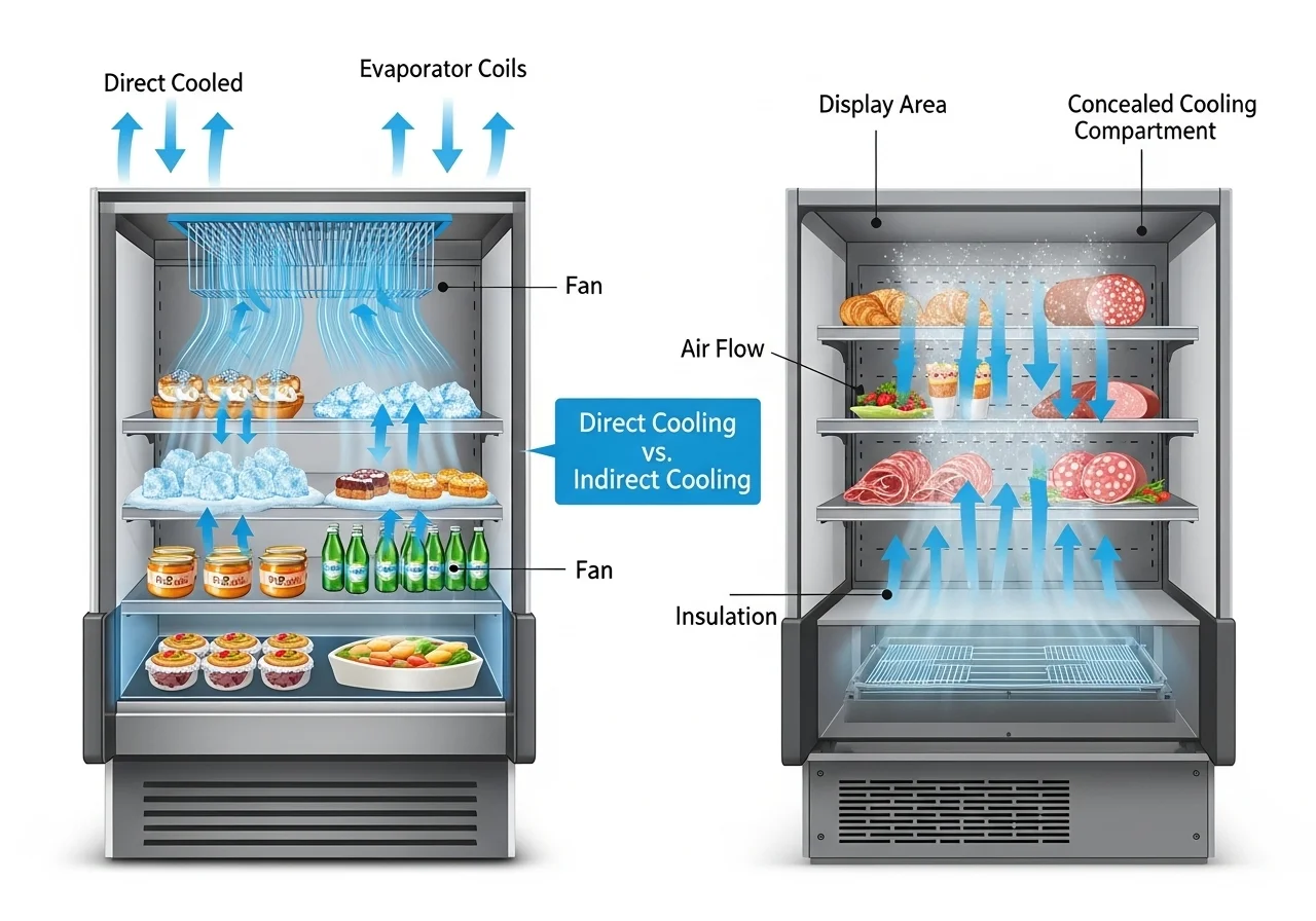 쇼케이스의 냉각 방식은 크게 직접 냉각식과 간접 냉각식으로 나뉩니다. 각각의 장단점을 잘 파악하고 우리 가게의 주력 제품에 맞춰 선택하는 것이 중요해요.